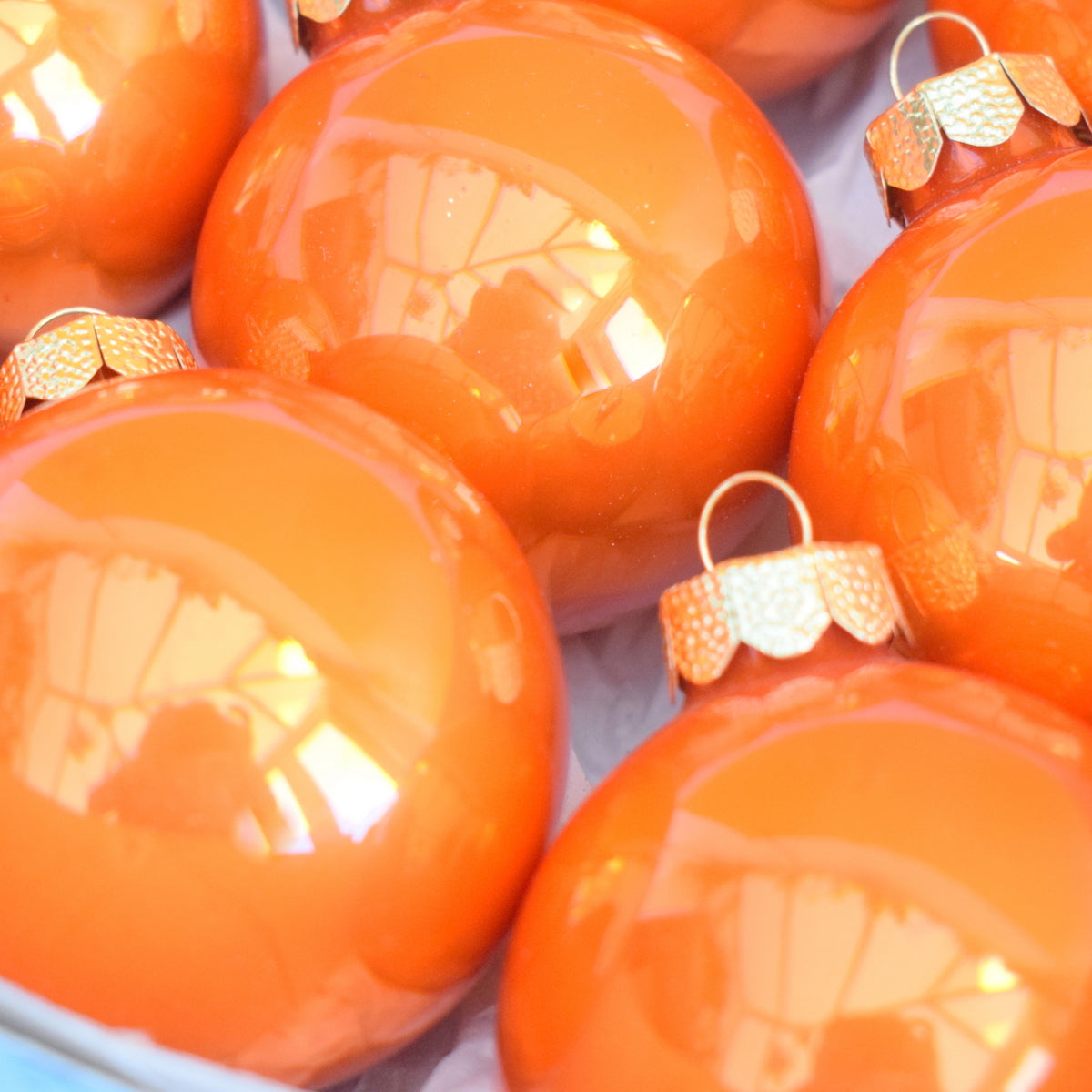 Vintage 1970s Medium Glass Christmas Baubles - Orange