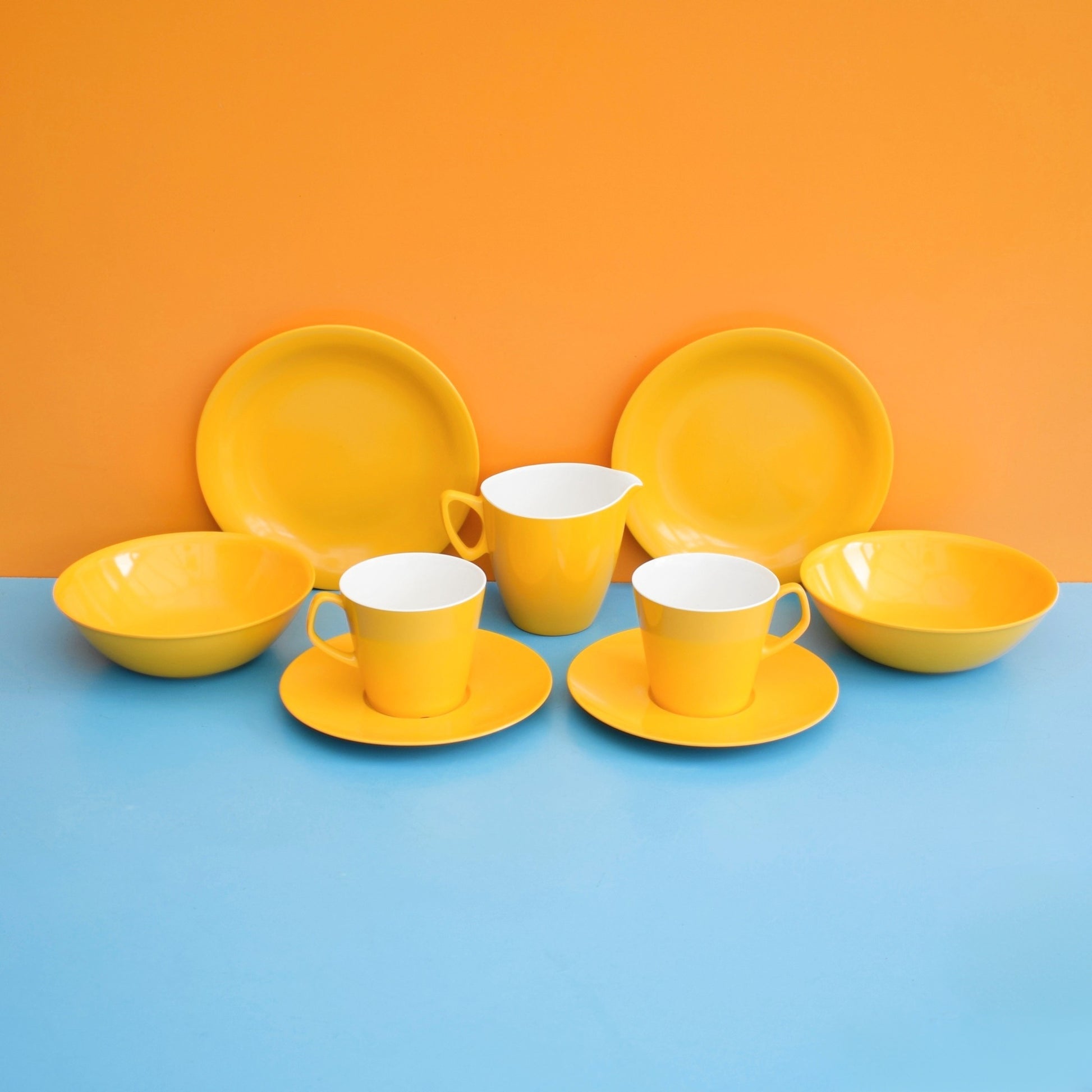 Vintage 1970s Melamine Plastic - Eggy Yellow Set