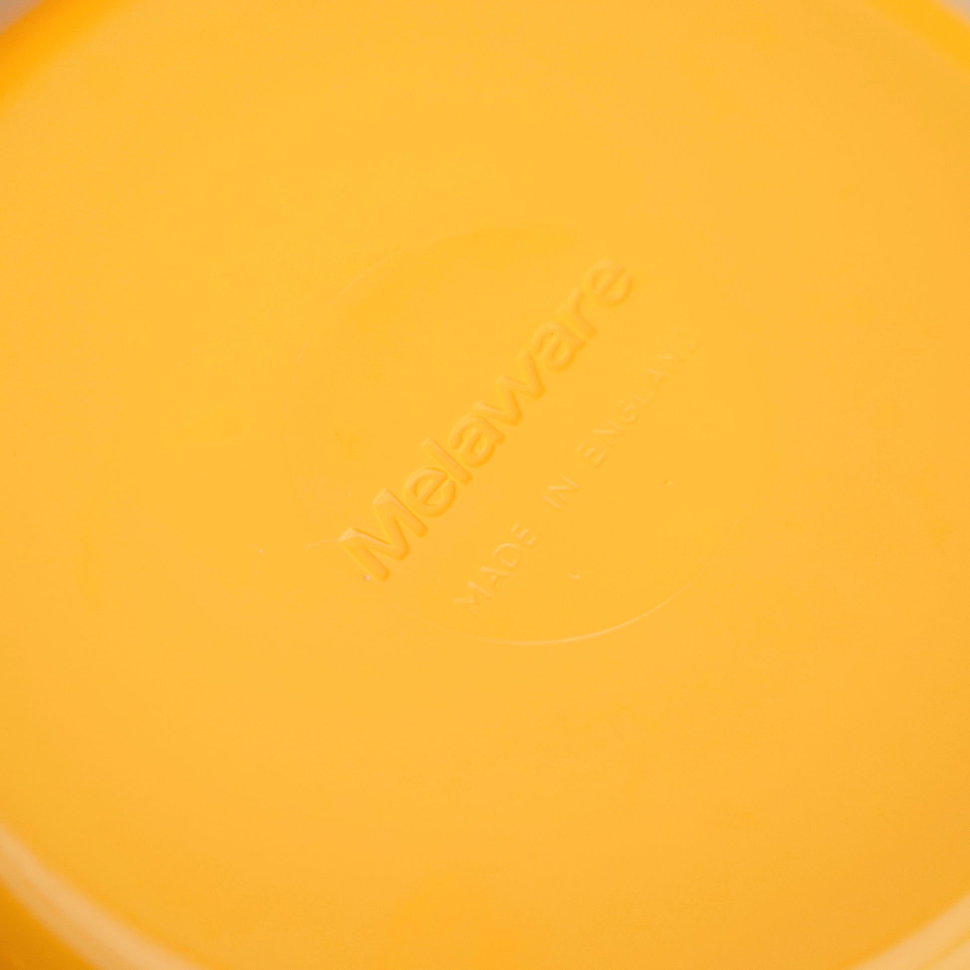 - Design French-made plates; Melaware bowls (England); 1970s retro melamine dinnerware in eggy yellow, orange, green & brown