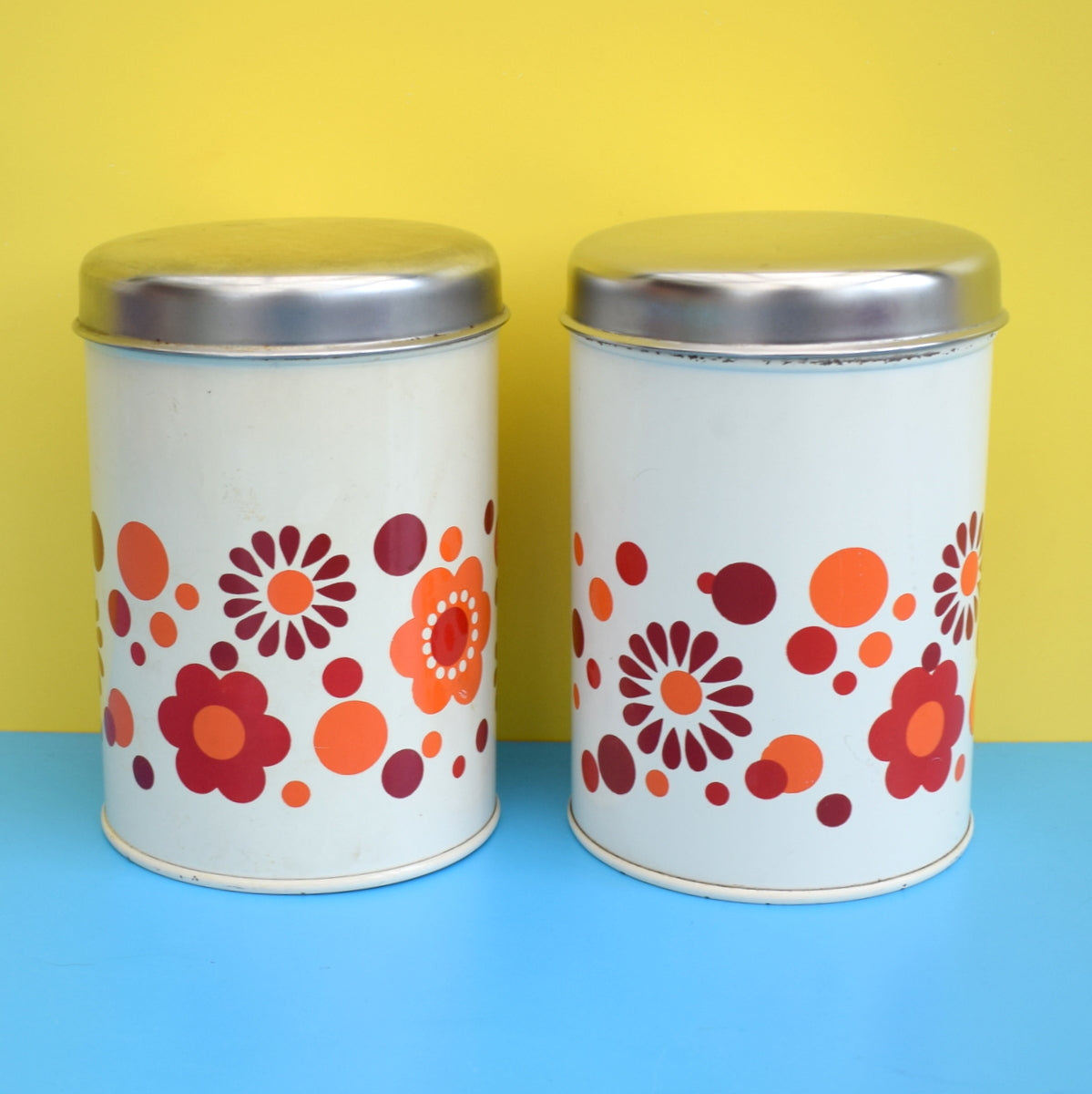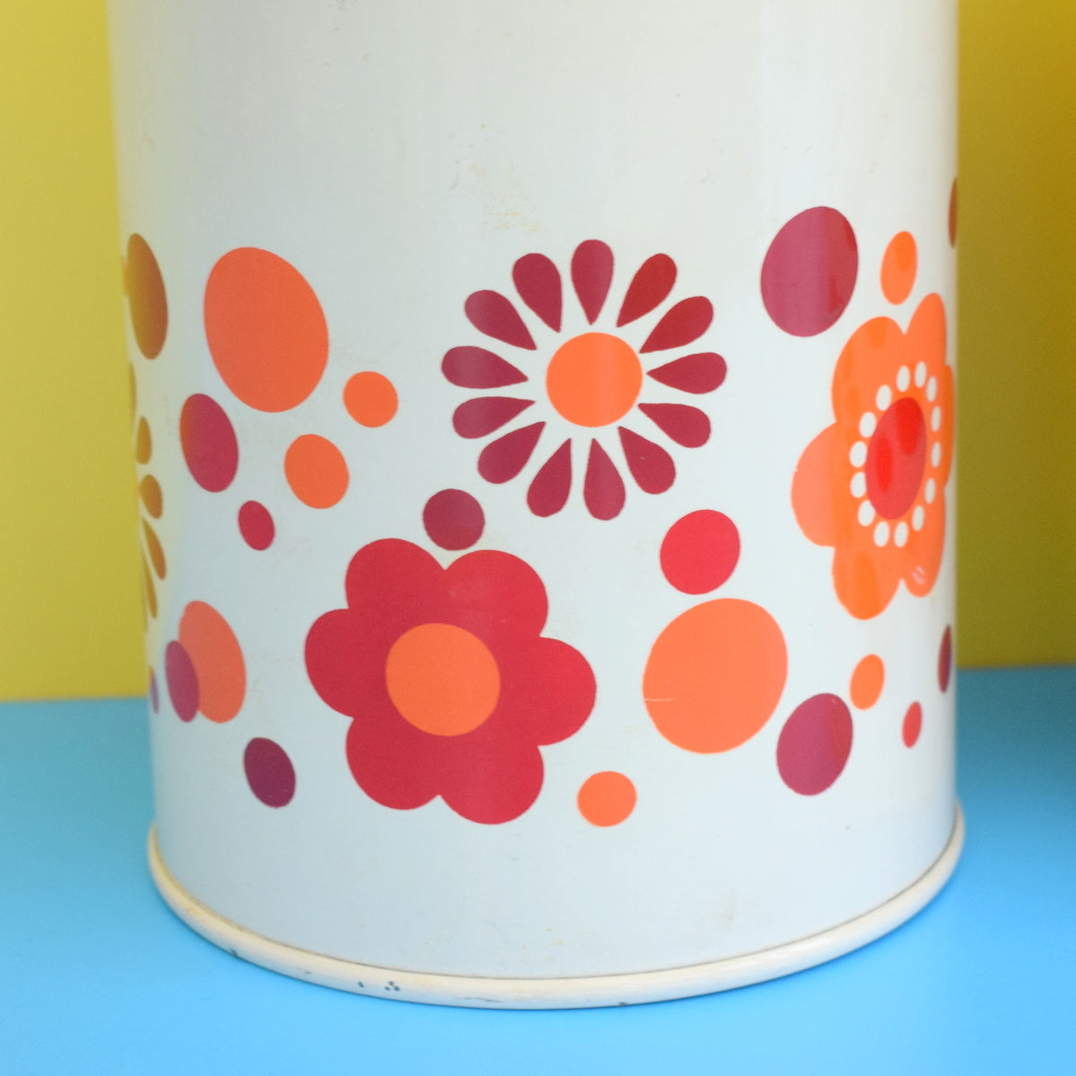 Vintage 1970s Metal Tin - Brabrantia Style - Flower Design, Orange & Chrome