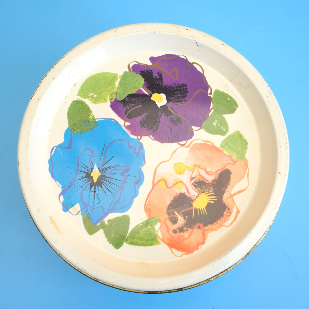 Vintage 1970s Metal Tin - Flower Power - Pansies