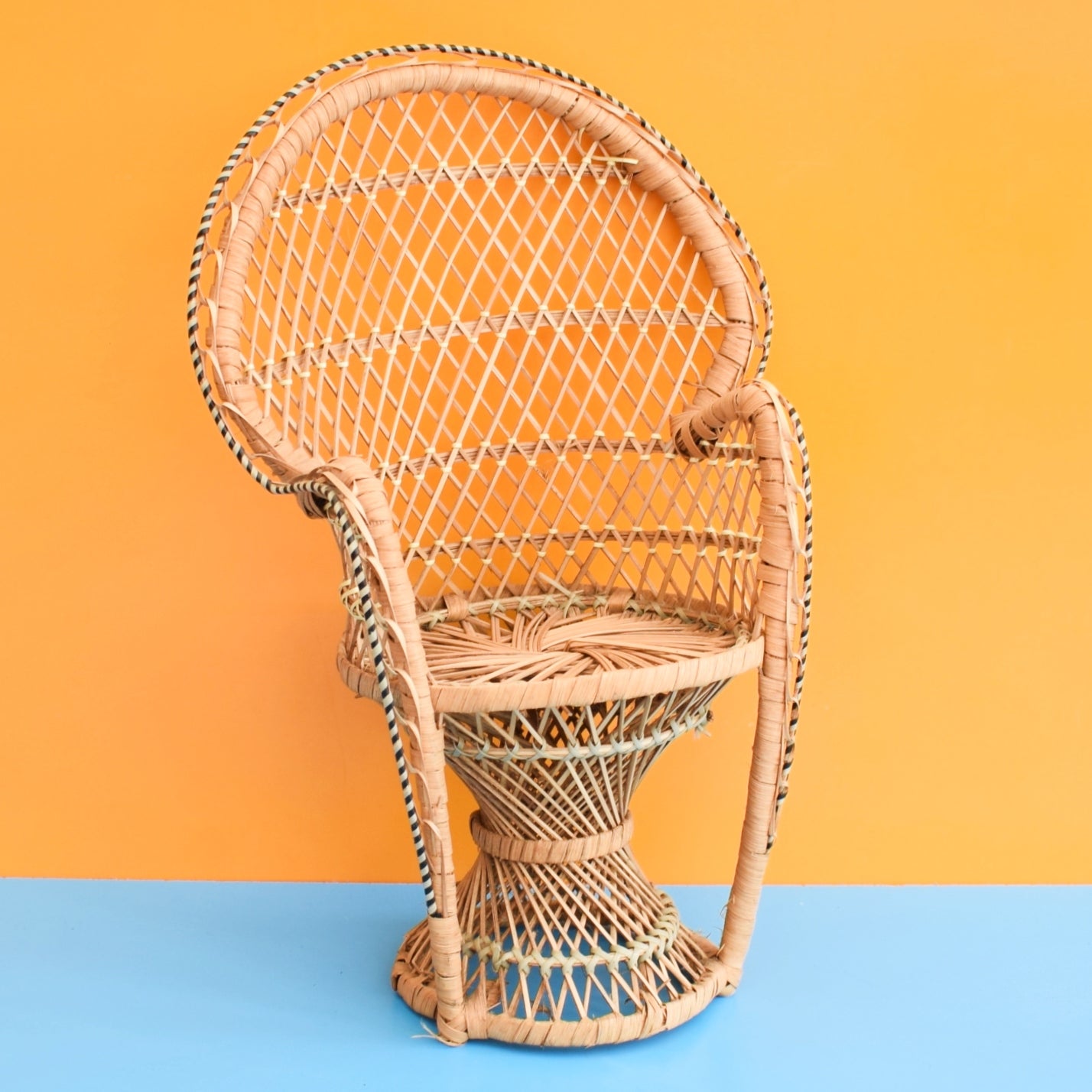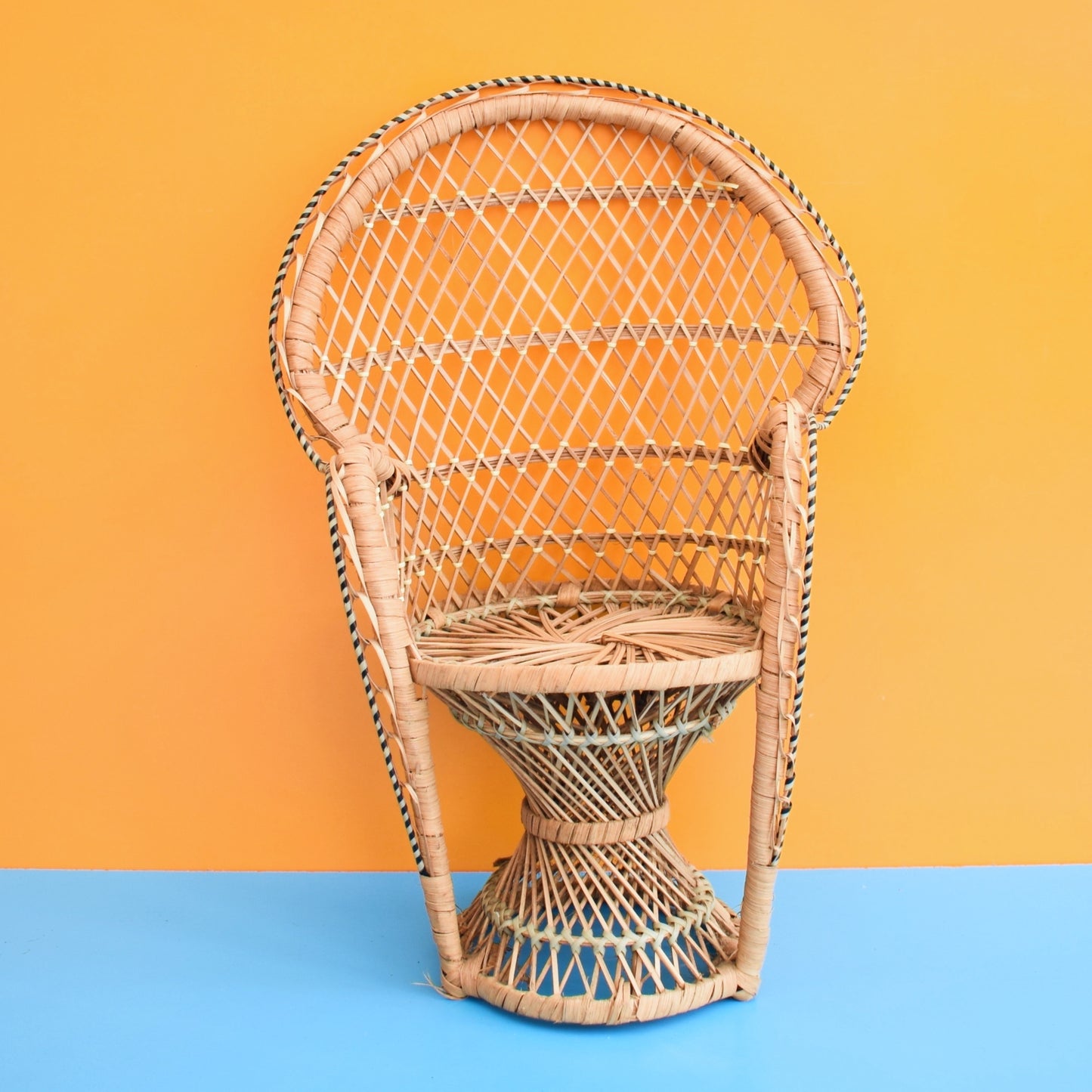 Vintage 1970s Mini Wicker Peacock Chair / Plant Stand