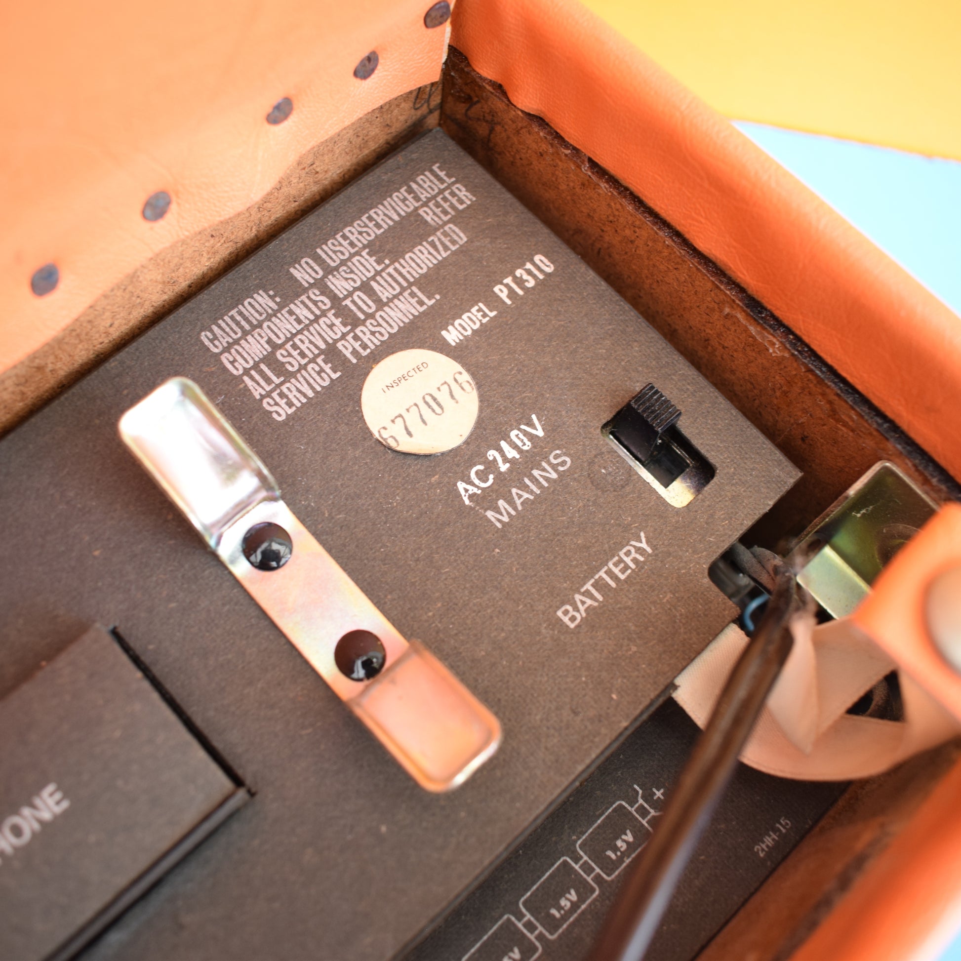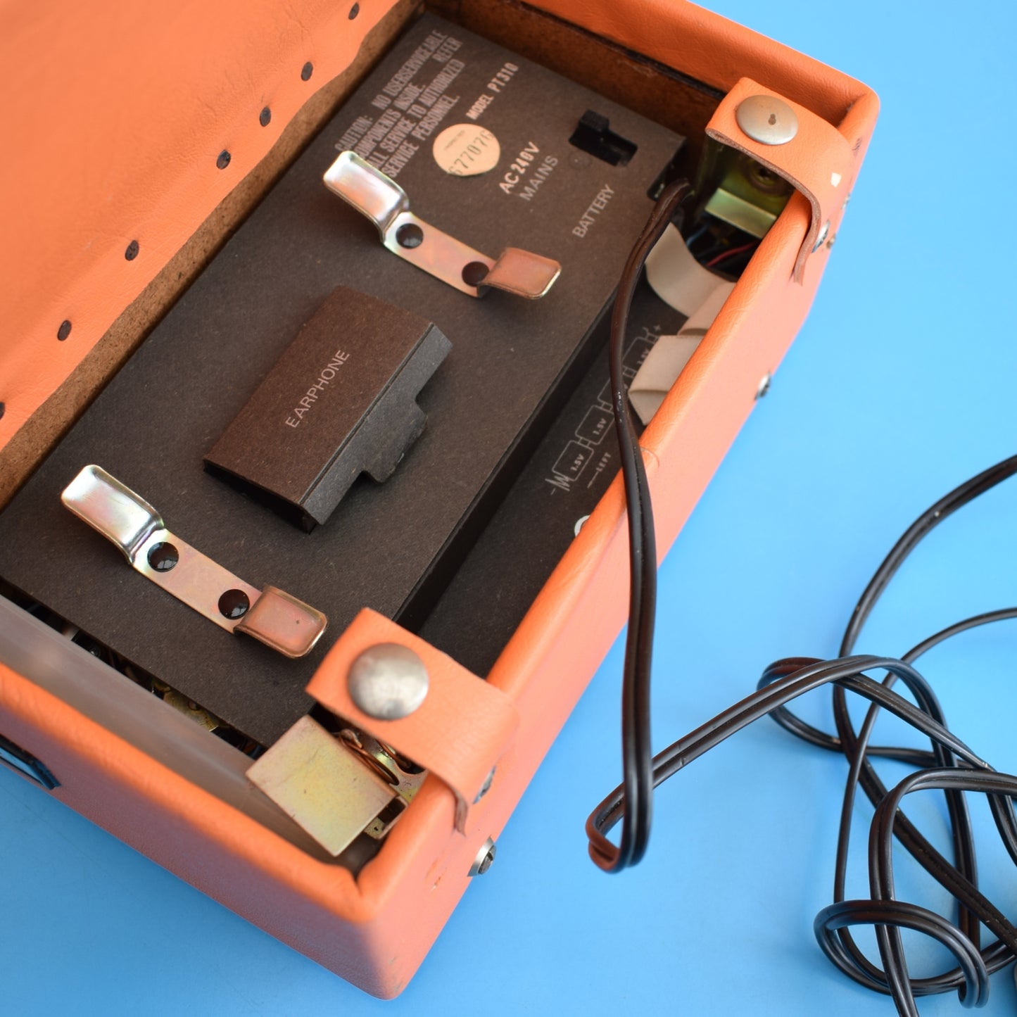 Amazing orange vinyl cover. Fully working with either the mains cord (attached and stored in the back) or batteries