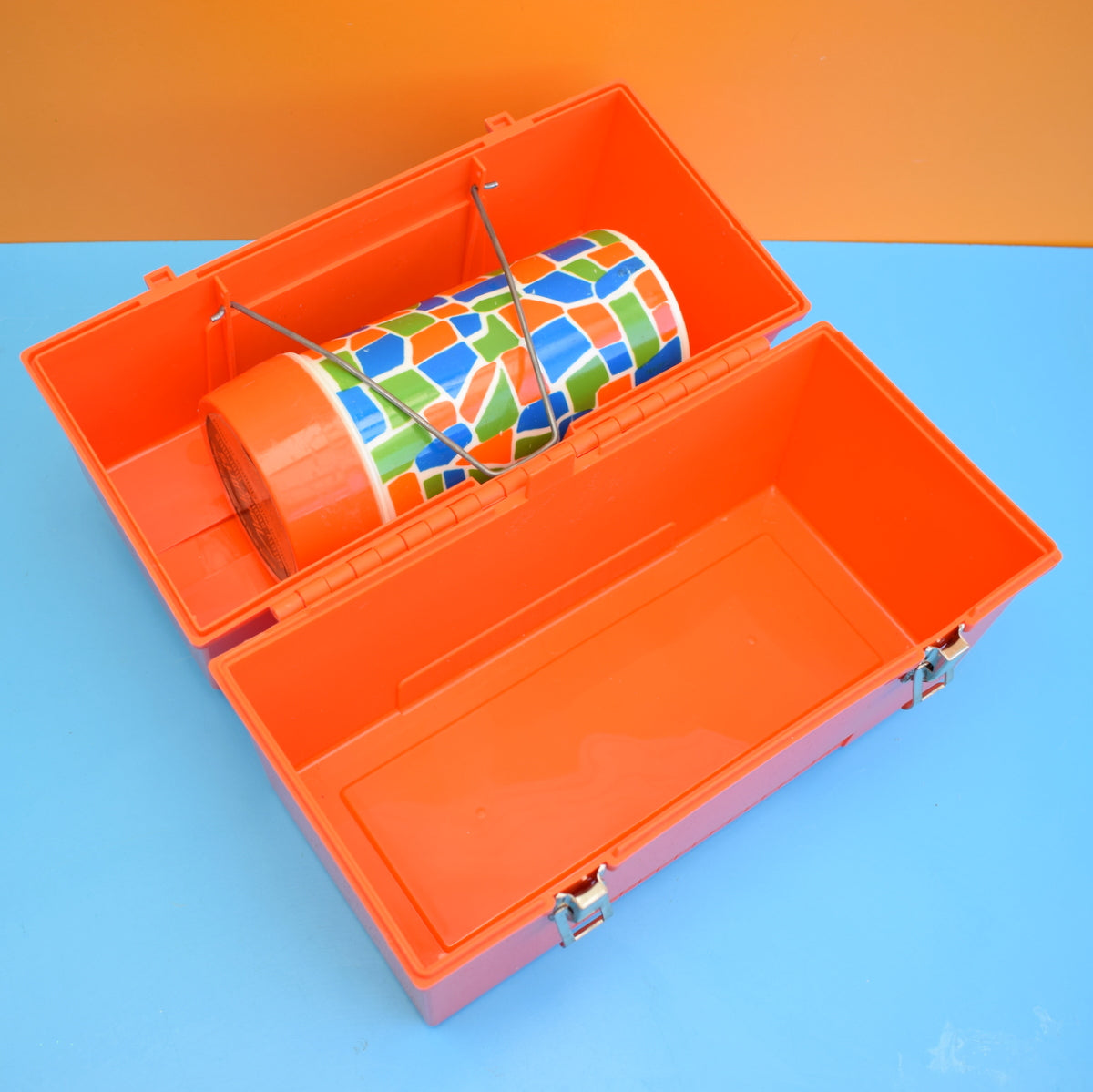 Vintage 1970s Plastic Lunch Box & Flask - Orange