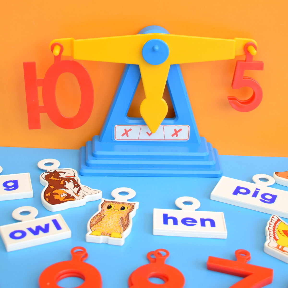 Vintage 1970s Plastic Scales- Educational Weight / Pictures / Maths