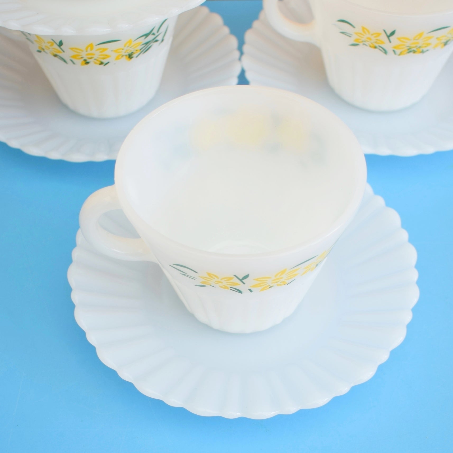Vintage 1970s Pyrex Cups & Saucers - Mexican Termocrisa - Daffodils