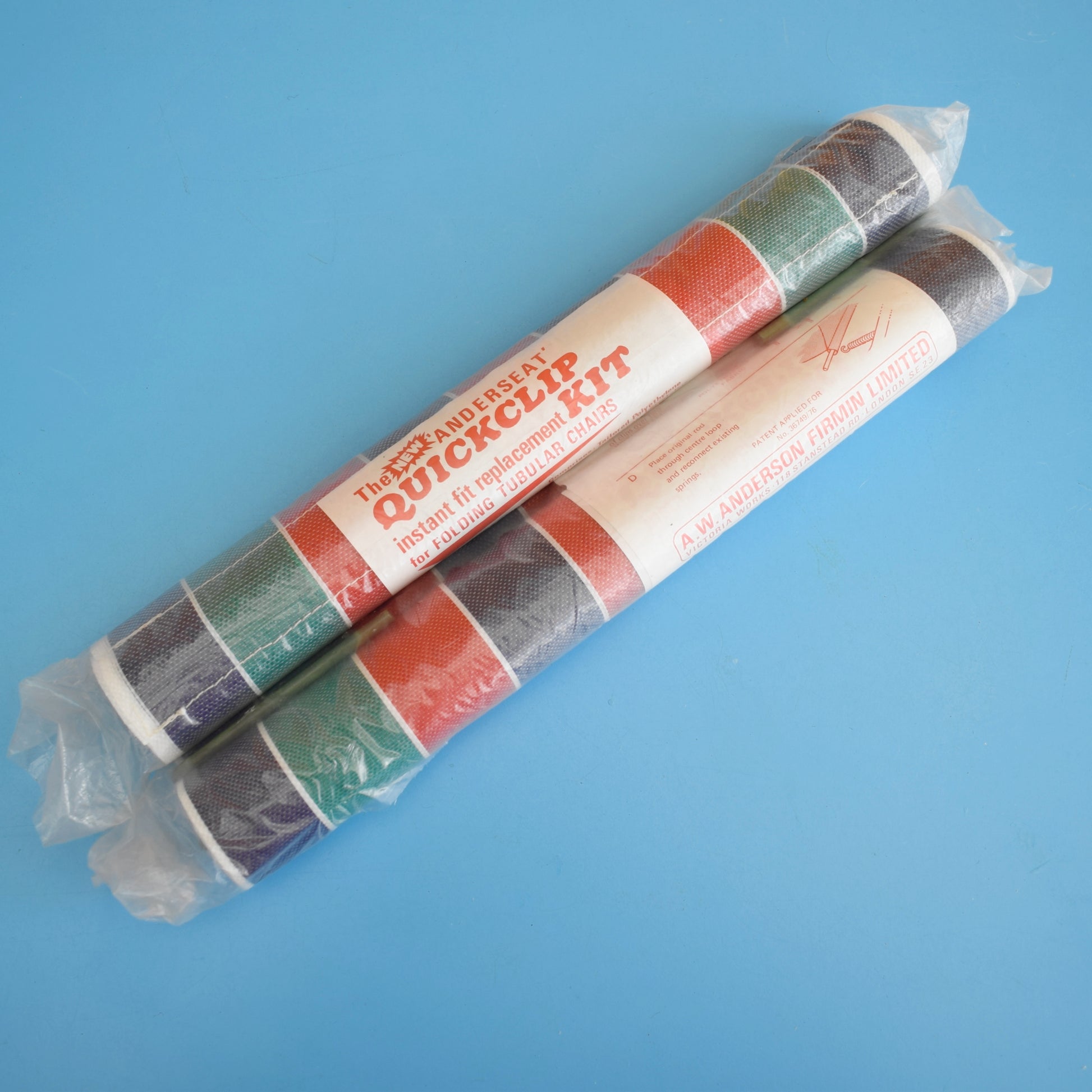 These original 1970s woven nylon chair recovery kits bring authentic mid‑century character to restoration projects and creative remakes. The resilient woven nylon is weather‑resistant and hardwearing, making it suitable for outdoor use on vintage patio chairs or for repurposing into cushions, bags and craft pieces. Each kit includes the necessary metal fittings to simplify refitting, though a brief compatibility check with your chair frame is recommended.