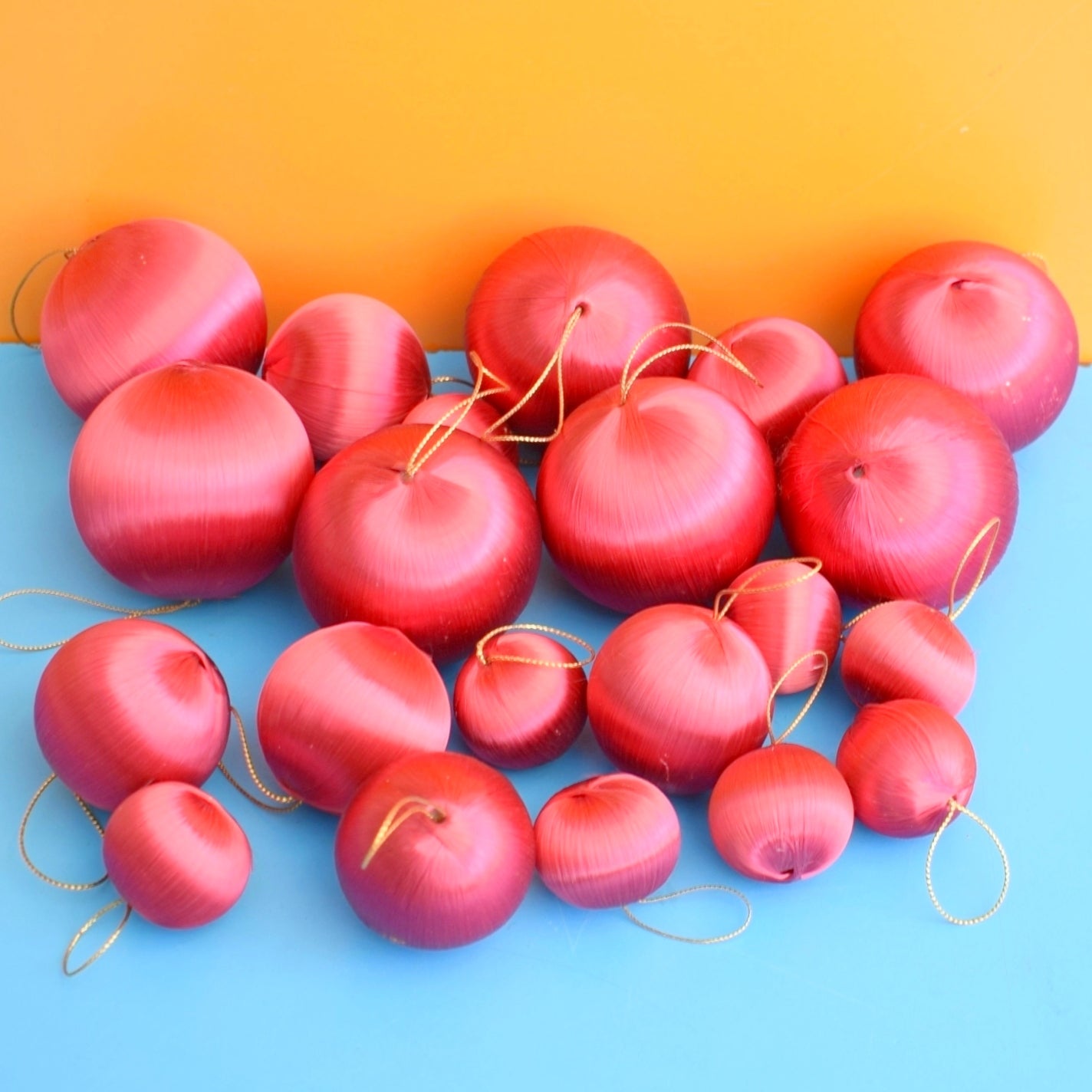 Vintage 1970s Satin Christmas Baubles - Deep Rose Pink