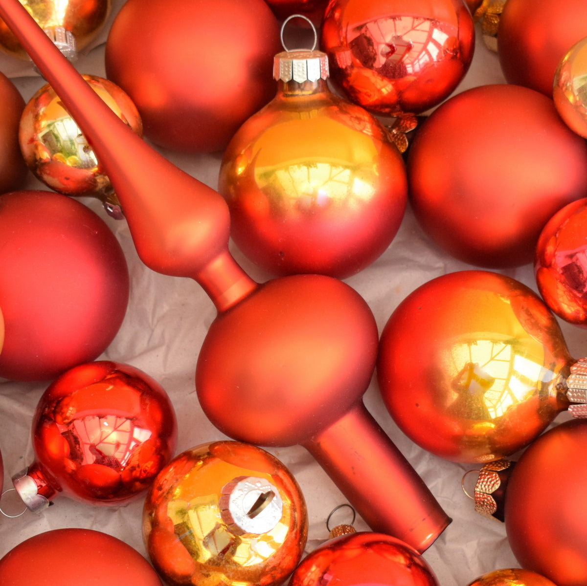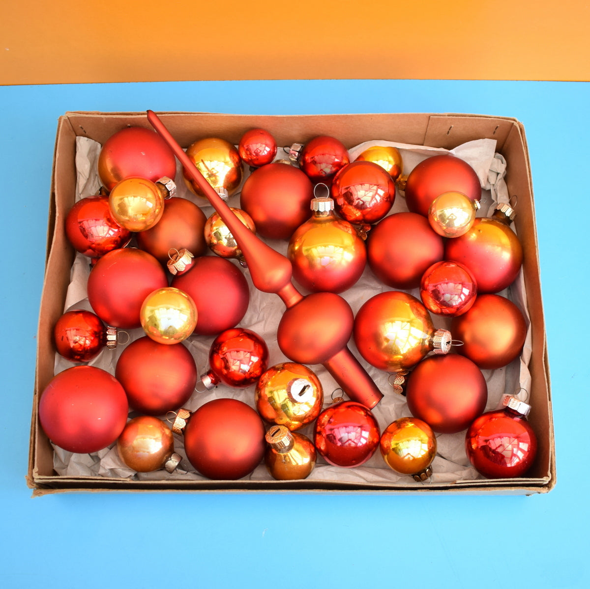 Vintage 1970s Satin Glass Christmas Bauble Set / Topper - Orange