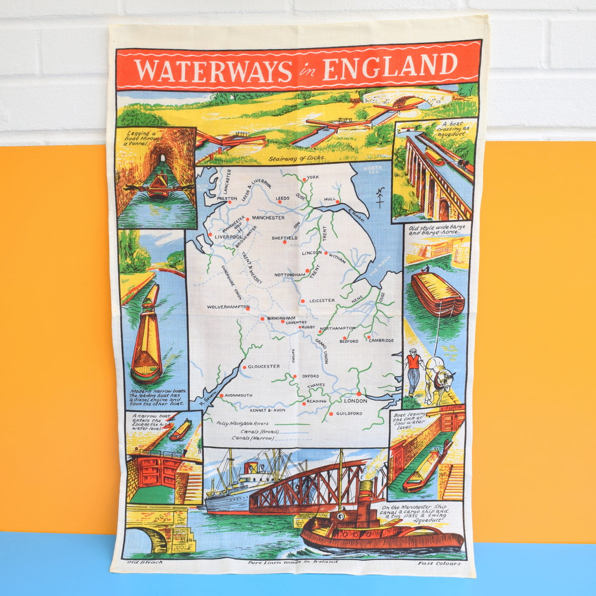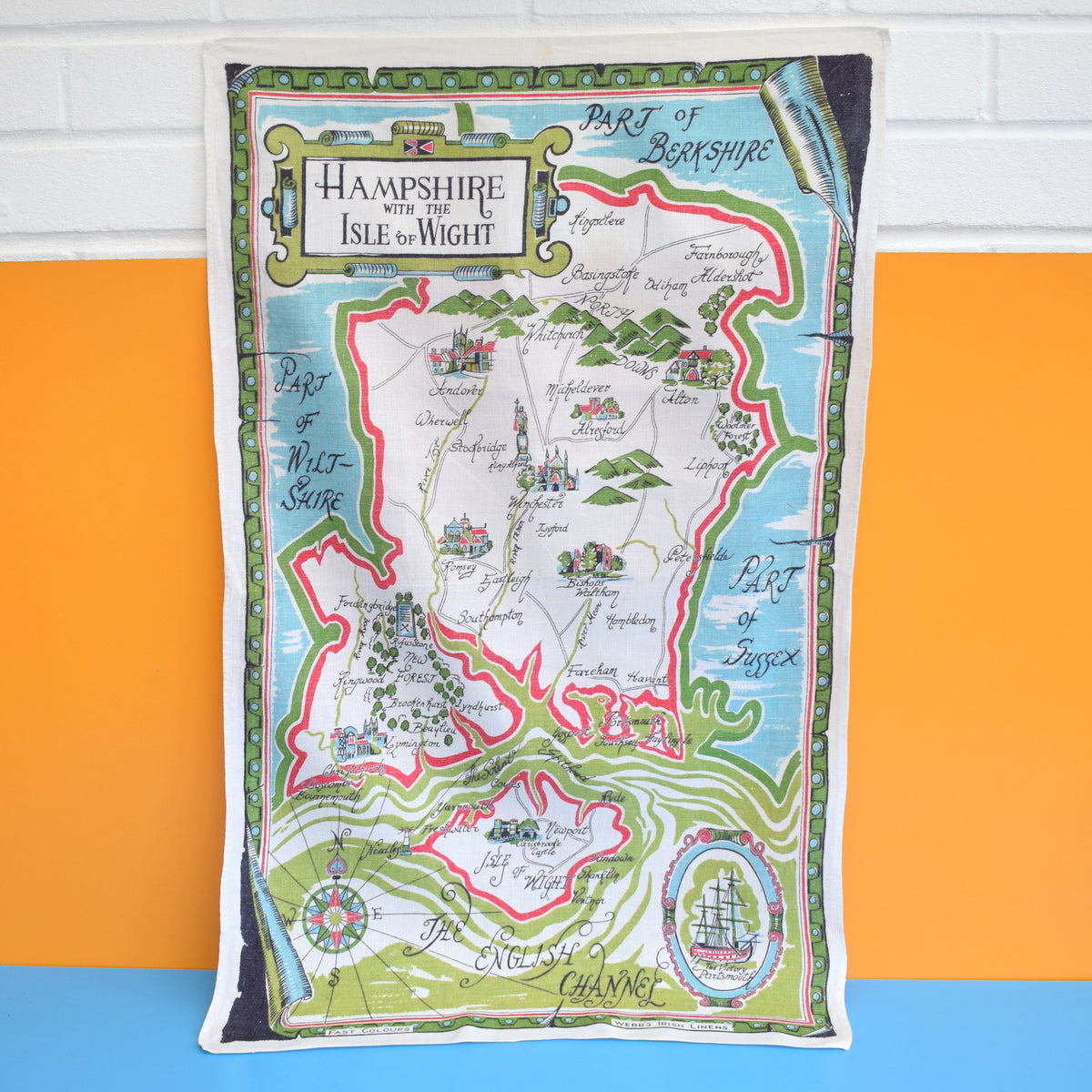 Vintage 1970s Tea Towel - Hampshire / Waterways