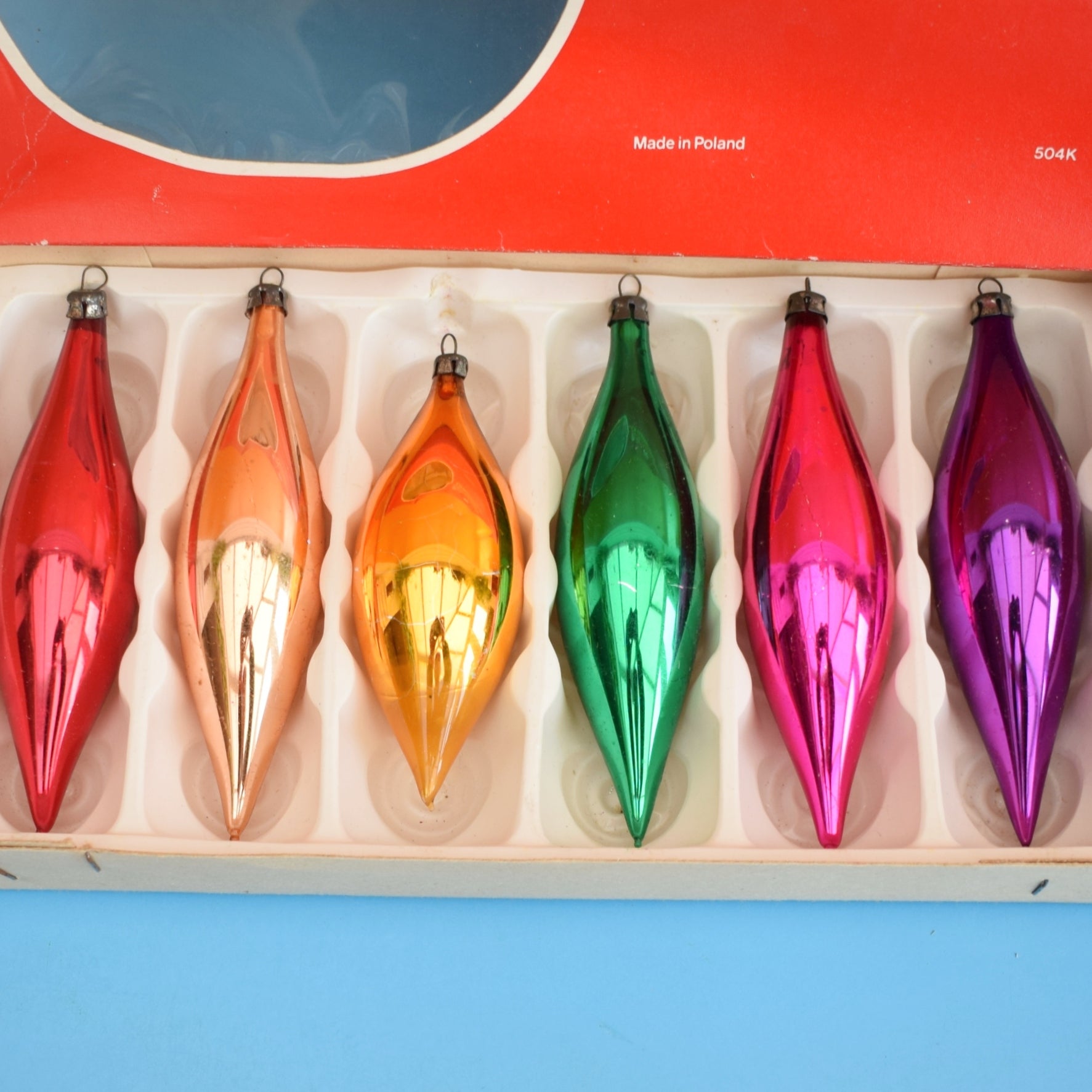Vintage 1970s Teardrop Glass Baubles - Rainbow - Woolies