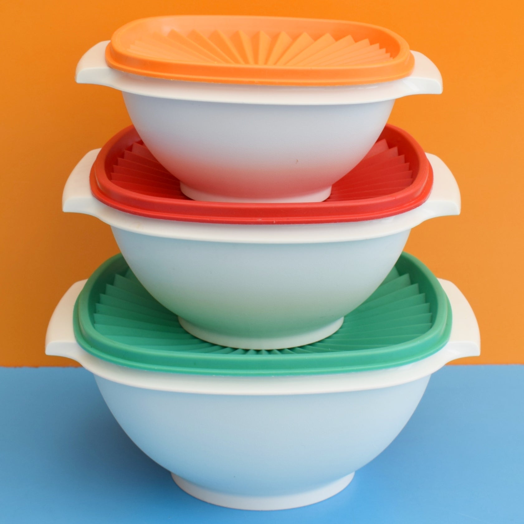 This is a set of vintage 1970s Tupperware plastic containers that can also be used as larger bowls.
