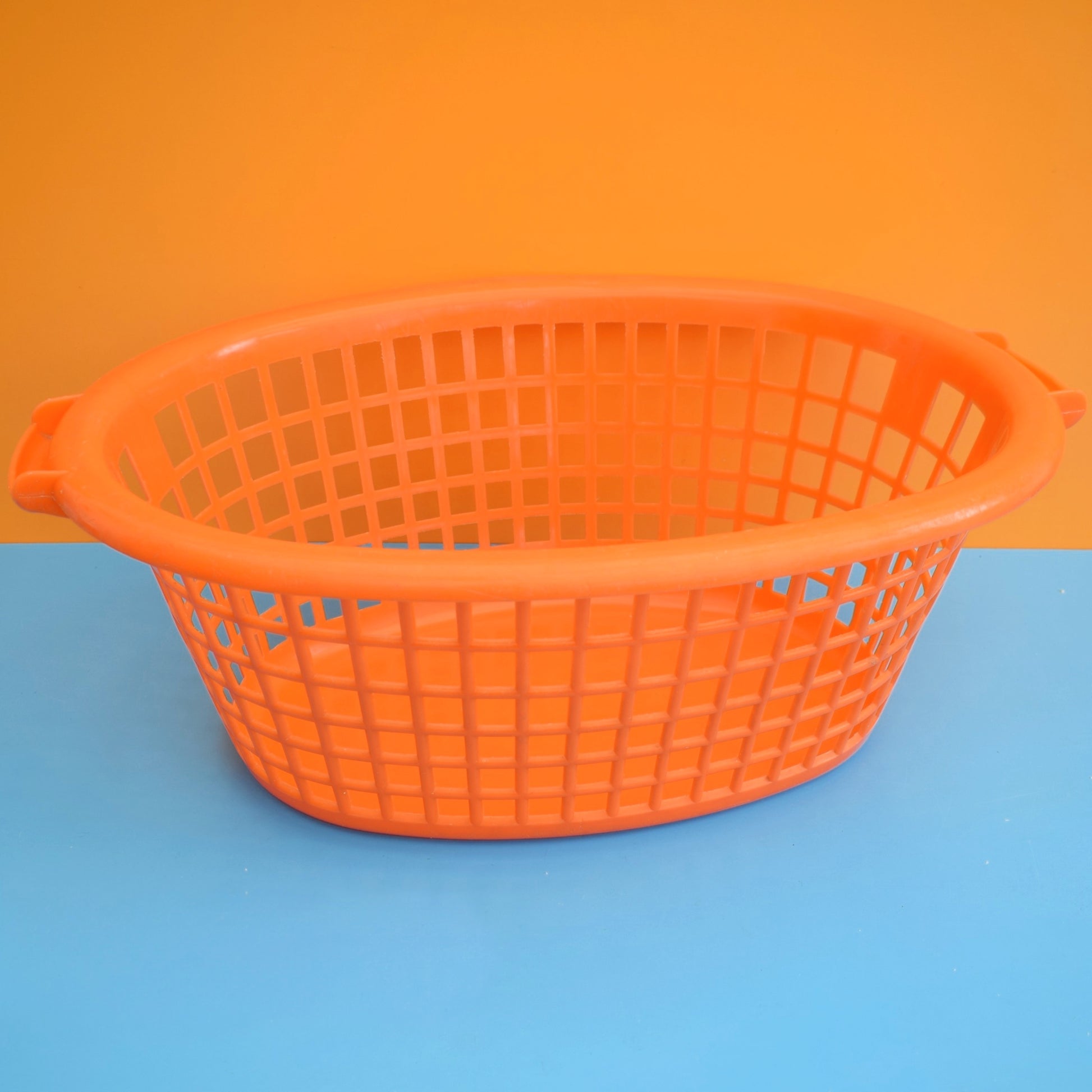 Retro 1970s orange plastic washing basket from Great Britain — a bright, durable and unmistakably vintage laundry solution for lovers of mid-century homeware and practical everyday use.