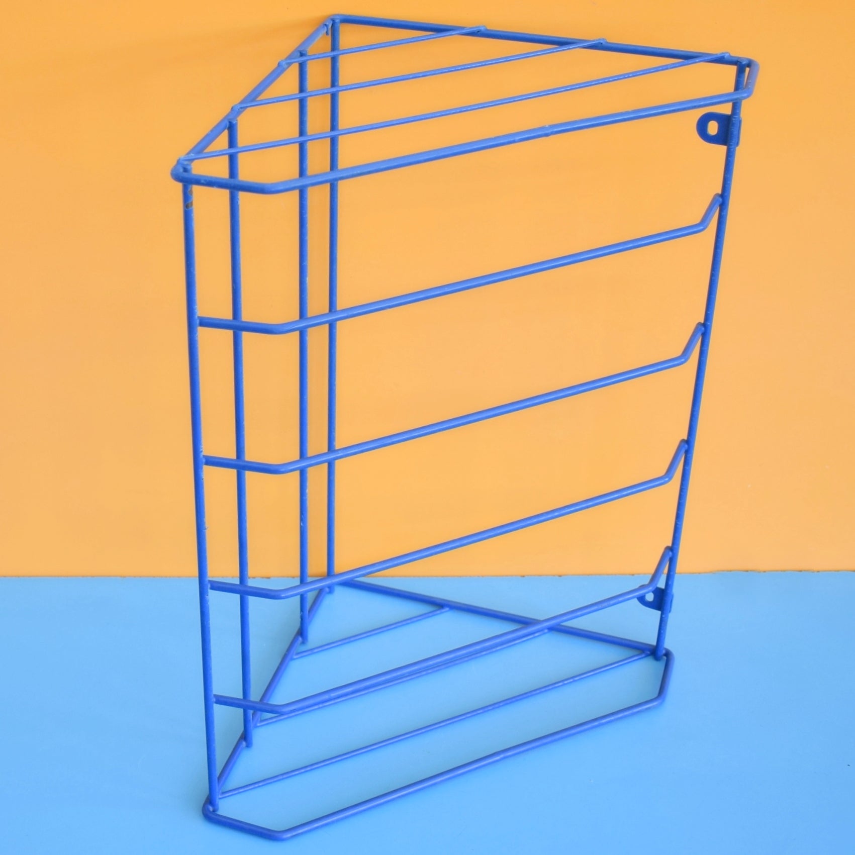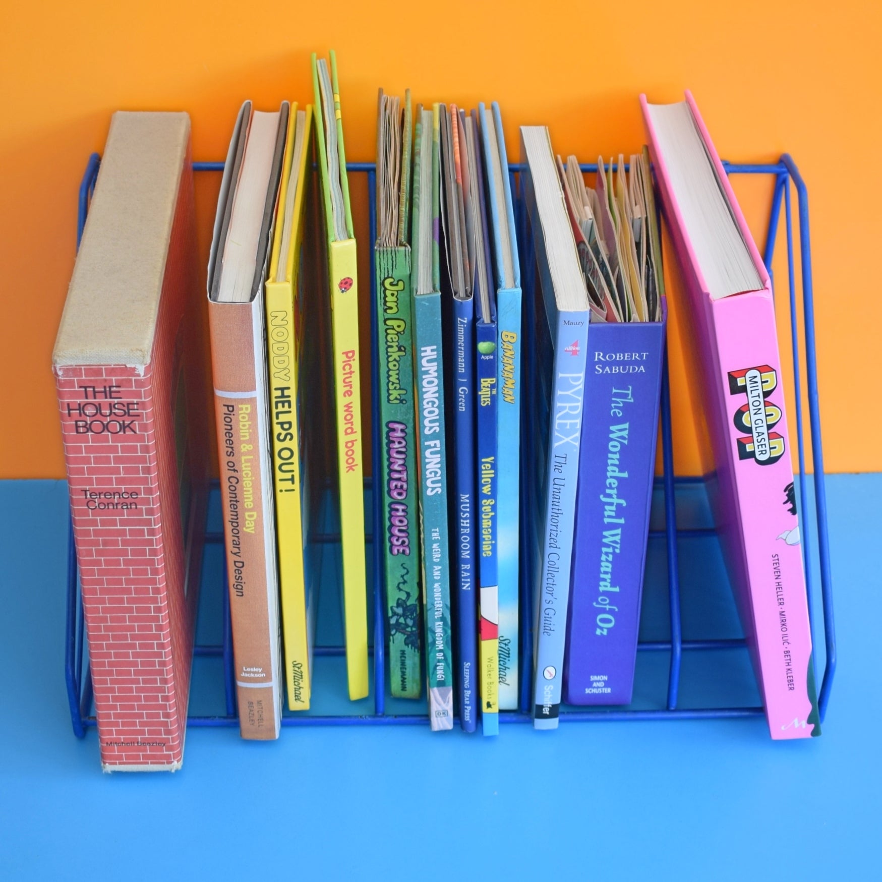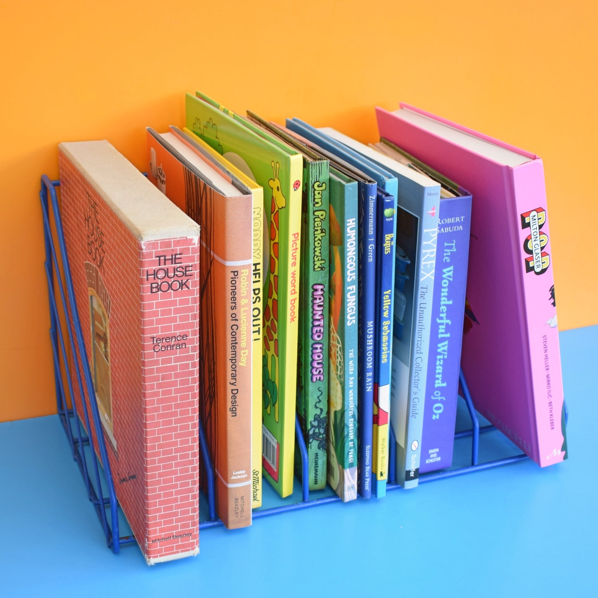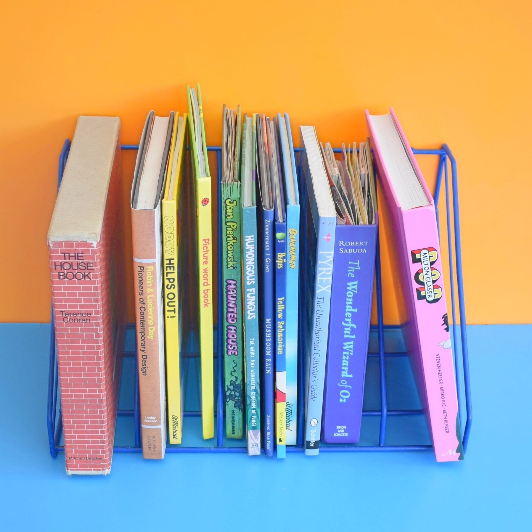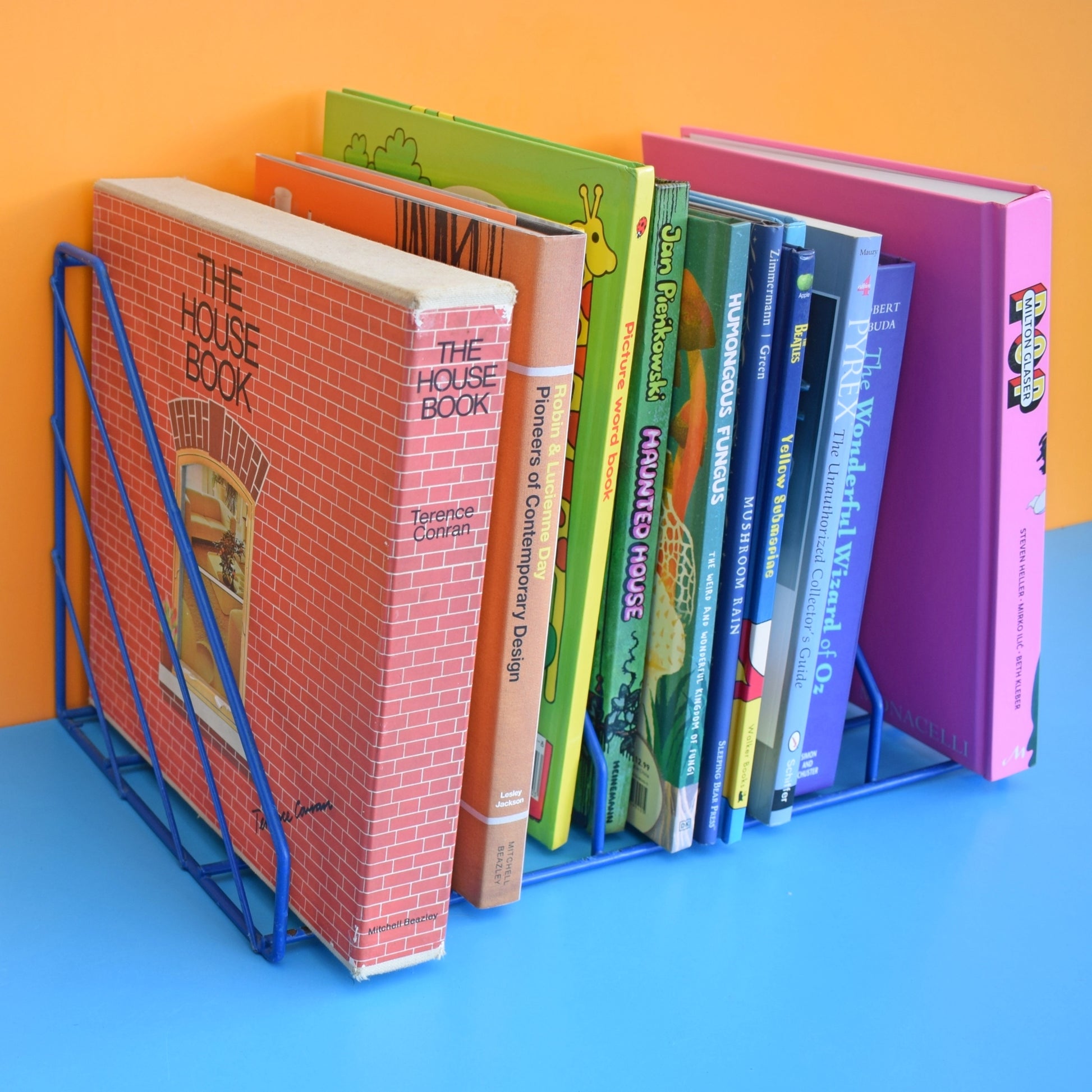 Vintage 1970s Wire Book / Box File Rack - Blue
