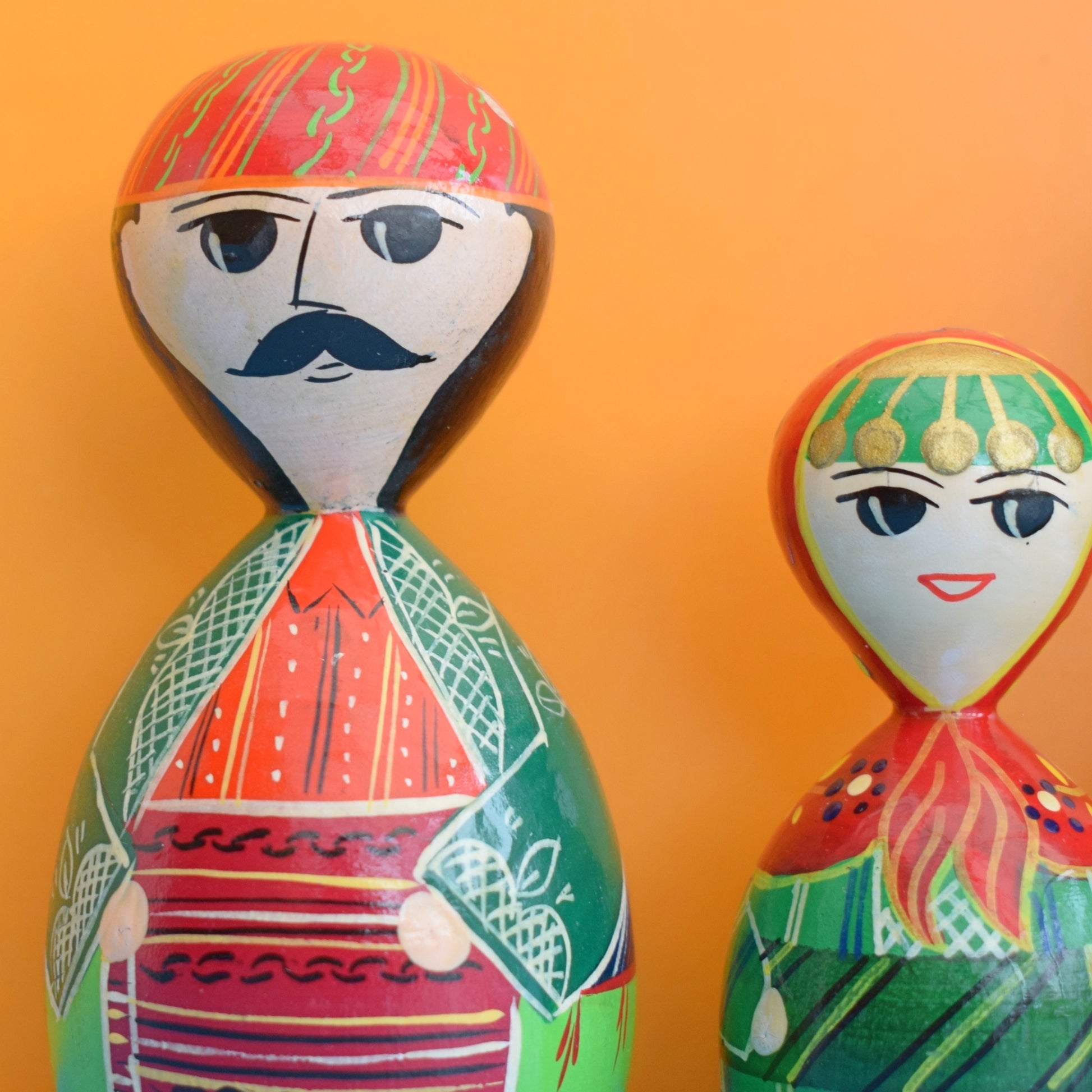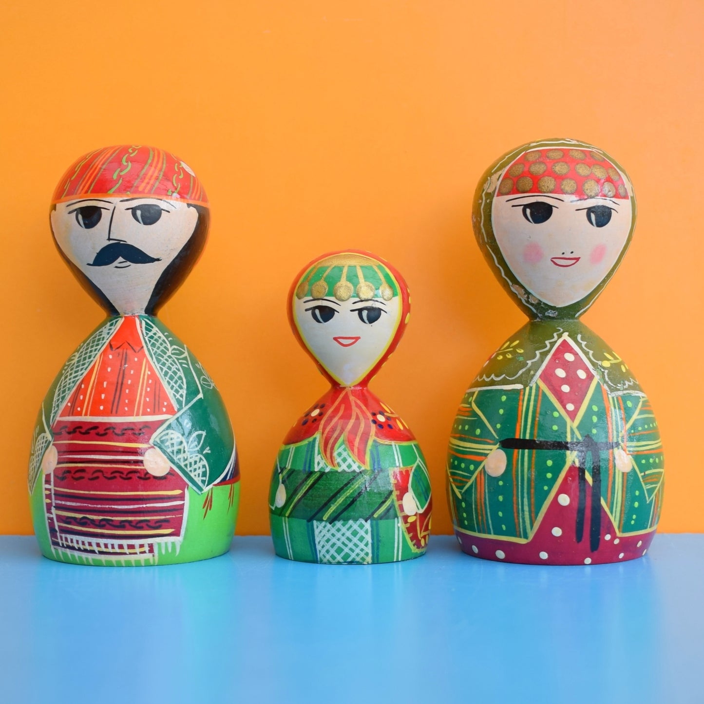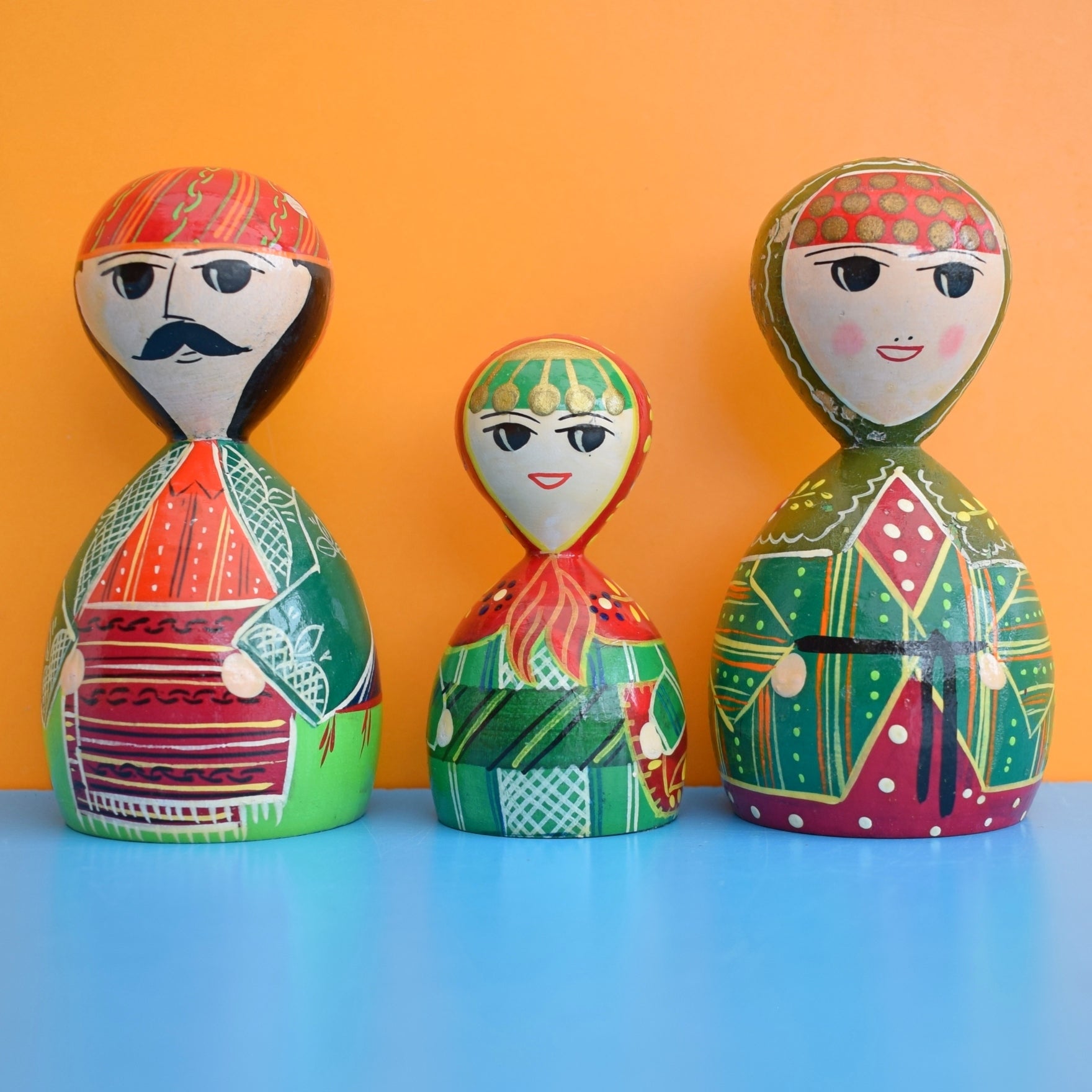 Vintage 1970s Wooden Russian Painted Figures