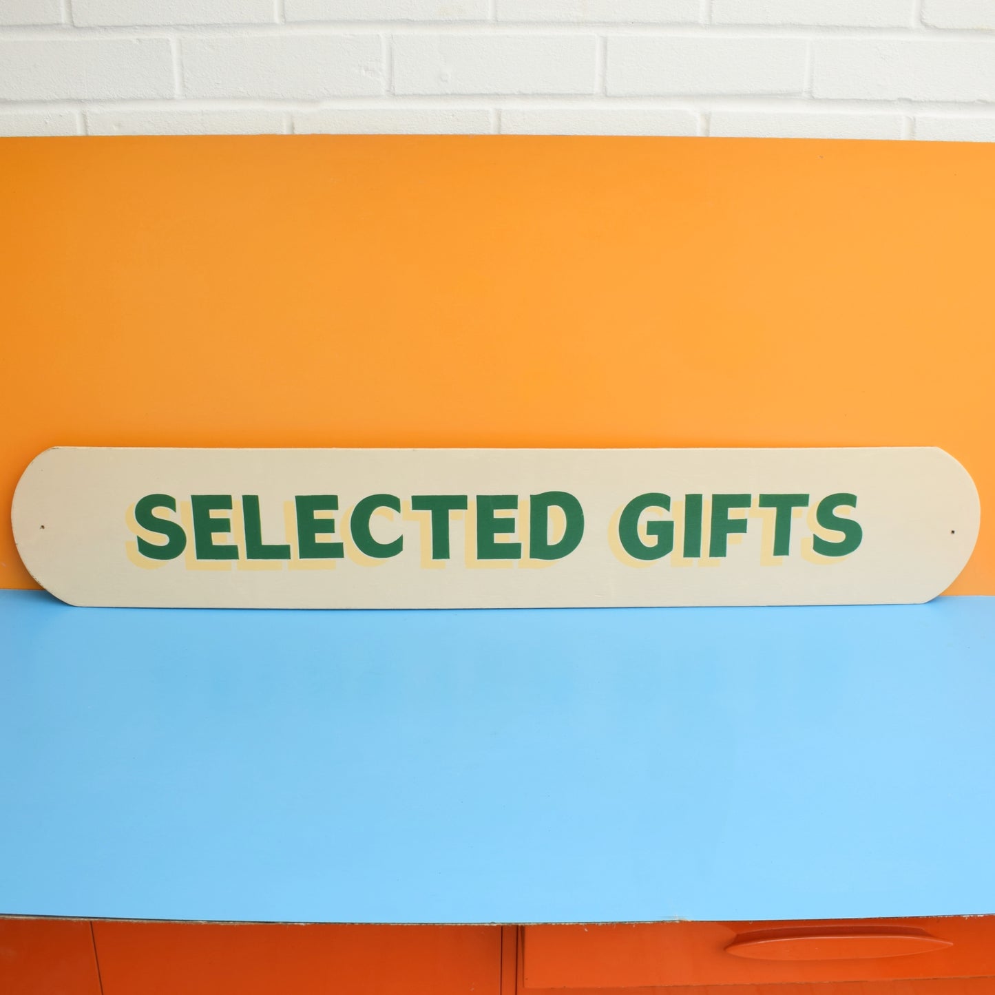 Hand written, but well done in green and cream on a creamy background. Made from plywood i think