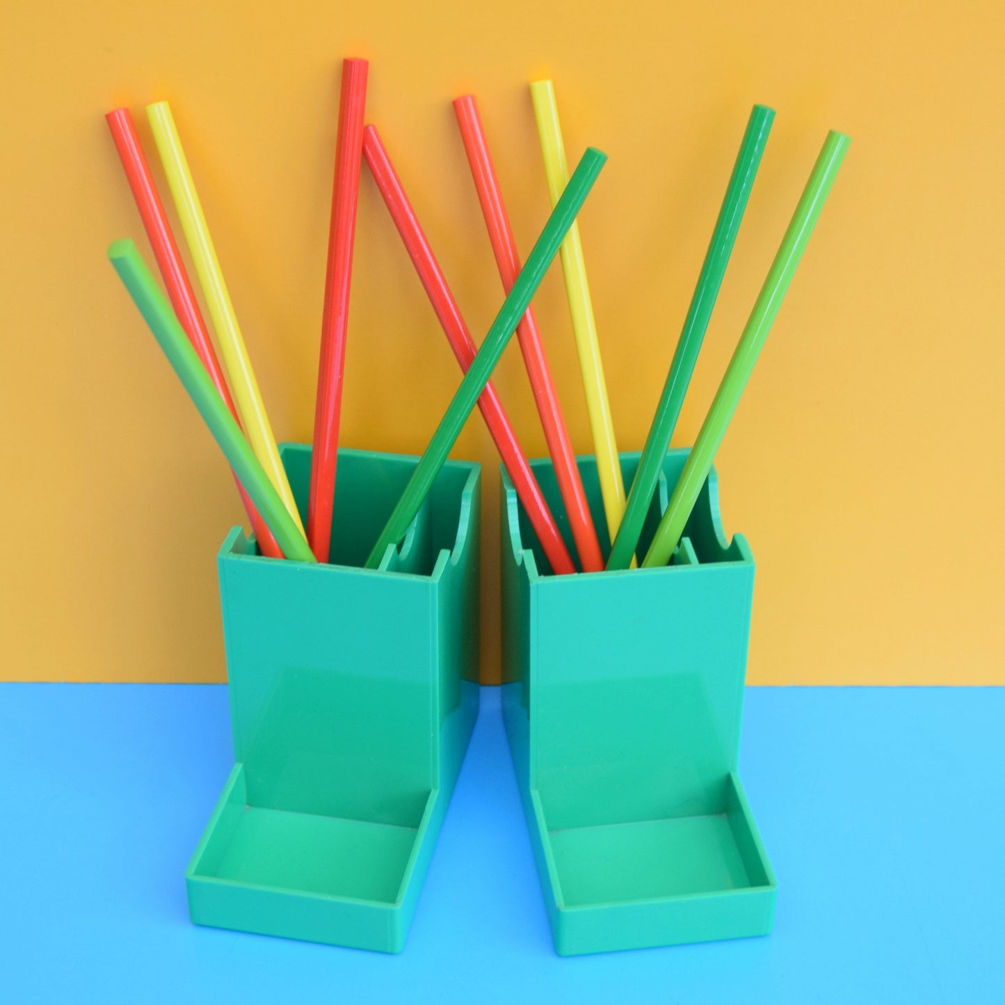 Vintage 1980s Acrylic Pencil Pot / Hole Punch - Green / Orange