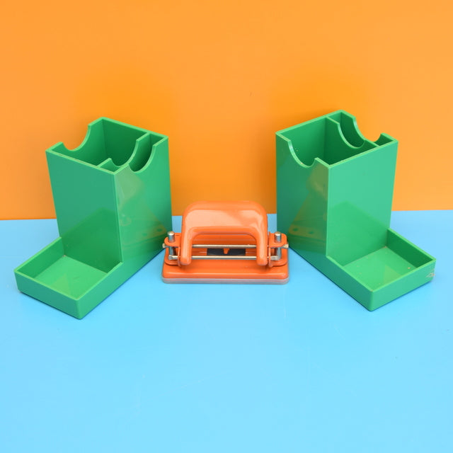 This is a simple, green acrylic pencil pot and hole punch, great for any retro desk
