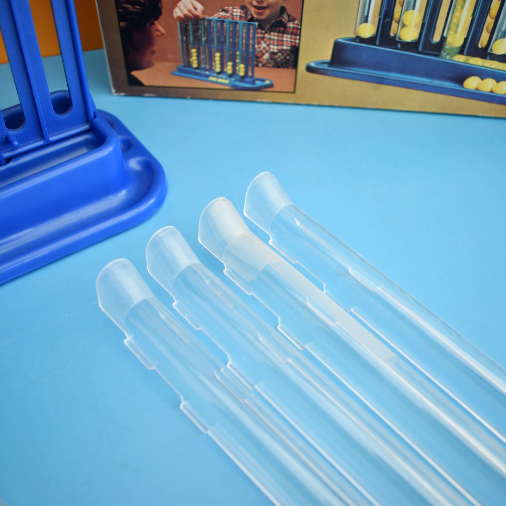 Brightly evocative of 1980s playrooms, this Catch 19 set is an uncommon find for retro game collectors and family game-night enthusiasts. The original box adds display value and helps preserve the components; it shows reasonable wear consistent with age, while the repaired section of one tube has been carefully fixed and does not affect gameplay. Ideal for collectors, display, or casual play, this boxed set slips easily into evening entertainment or vintage collections.
