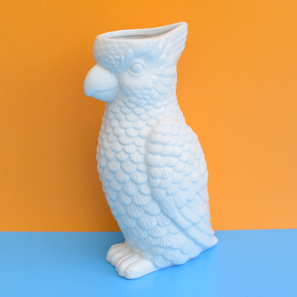 Vintage 1980s Ceramic Parrot Vase / Jug- White