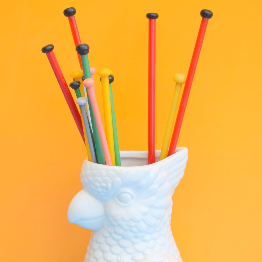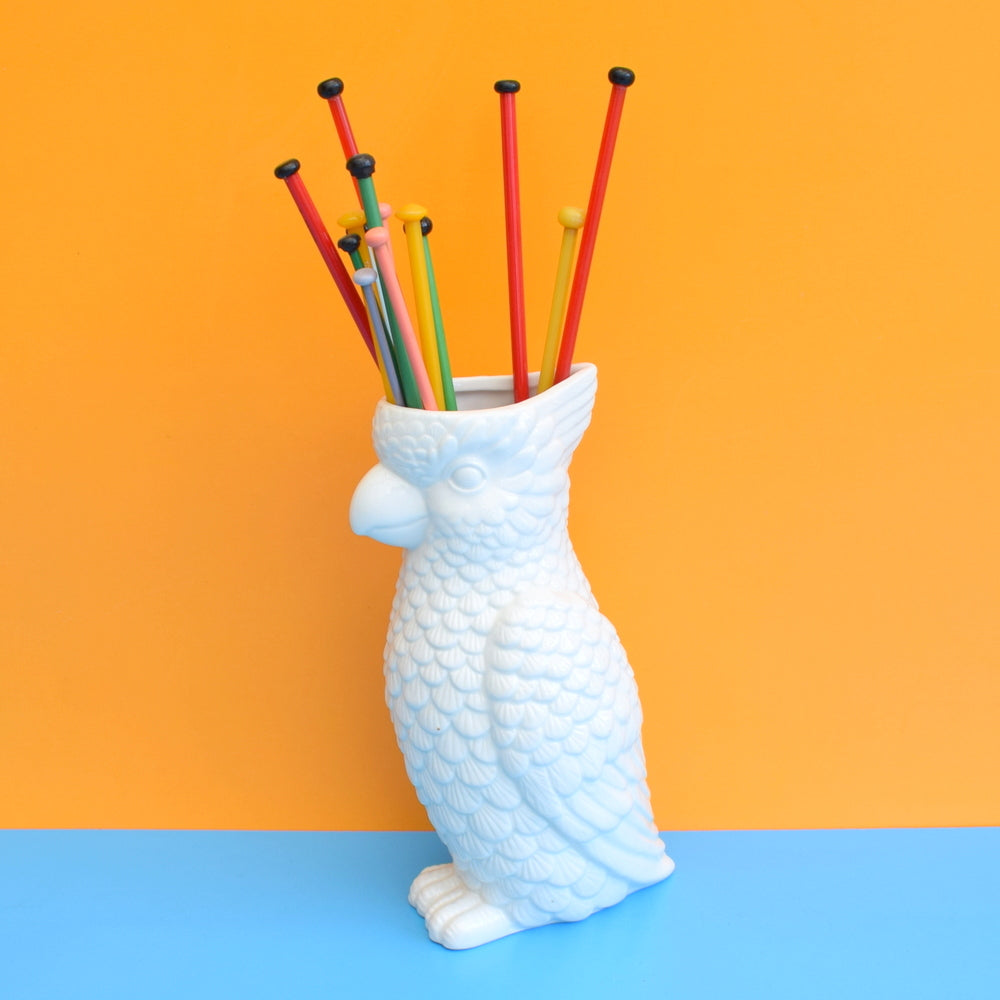 This is a lovely vintage ceramic vase or jug in the form of a parrot (knitting needles not included)