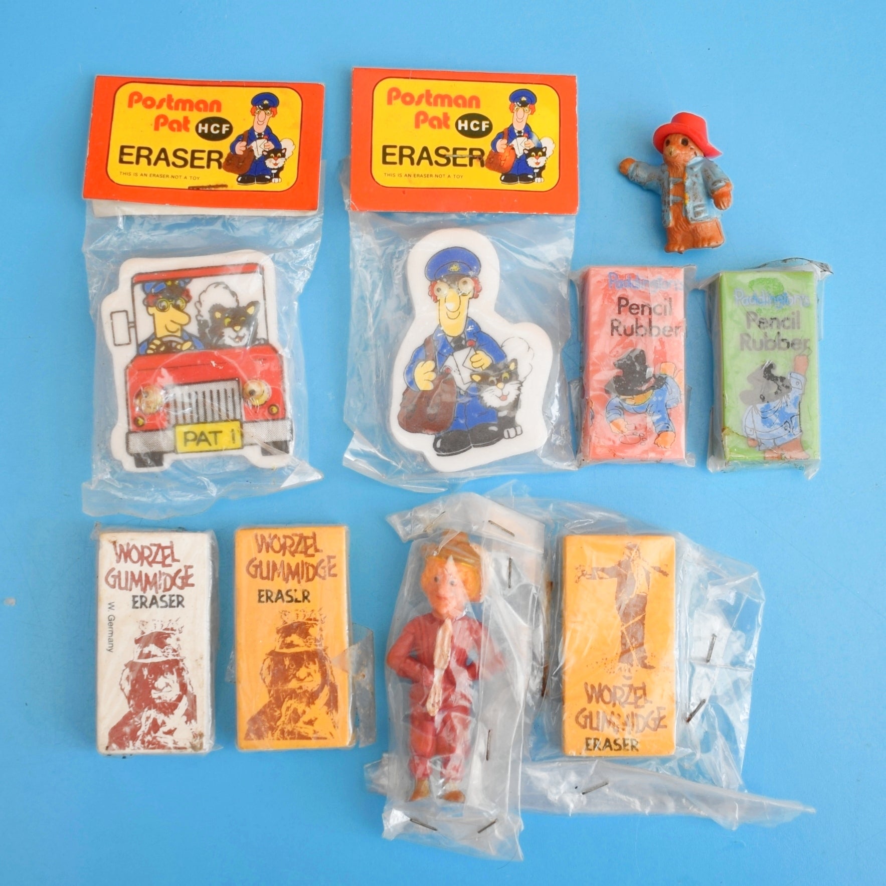 Perfect for display in shadow boxes, on shelves, or as part of a larger retro stationery archive, these erasers are both tactile and decorative. They make a charming gift for fans of vintage TV and storybook characters, and their rarity in unused condition enhances collectability for enthusiasts of 1980s memorabilia.