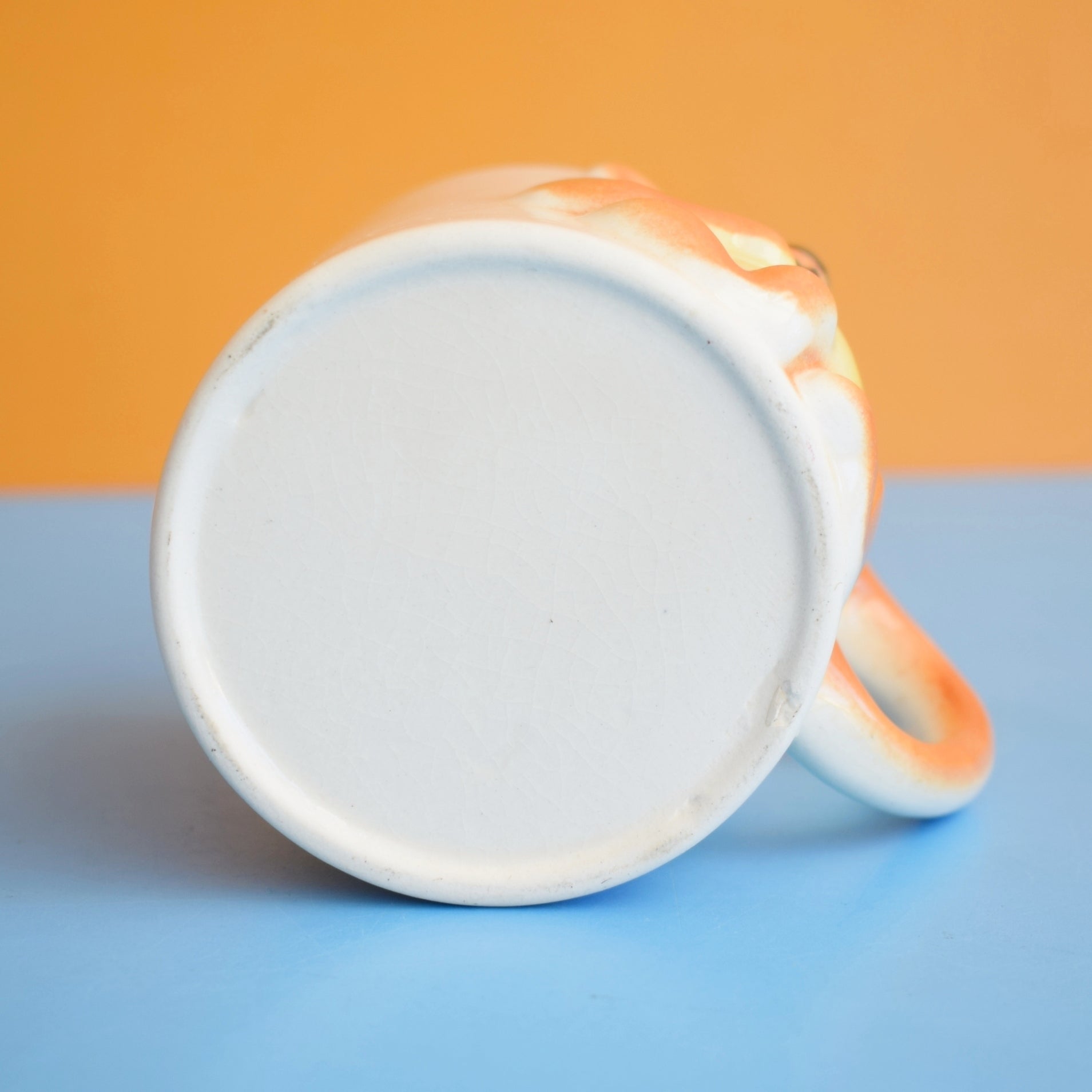 Handy for gift-giving, themed décor, or adding a nostalgic touch to your collection, the mug shows expected age-appropriate crazing in the glaze that adds authenticity without affecting usability. No makers' marks are present, which enhances its appeal as a curious vintage find.