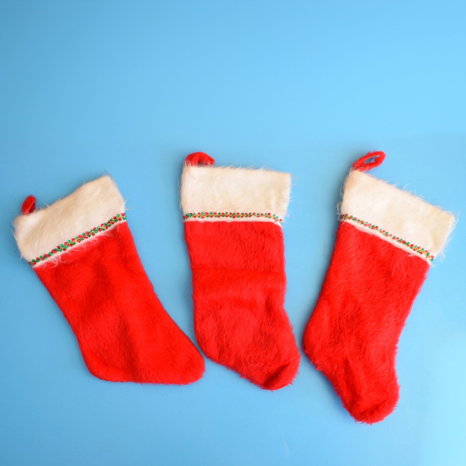Vintage 1980s Fluffy Christmas Stockings - Red x3