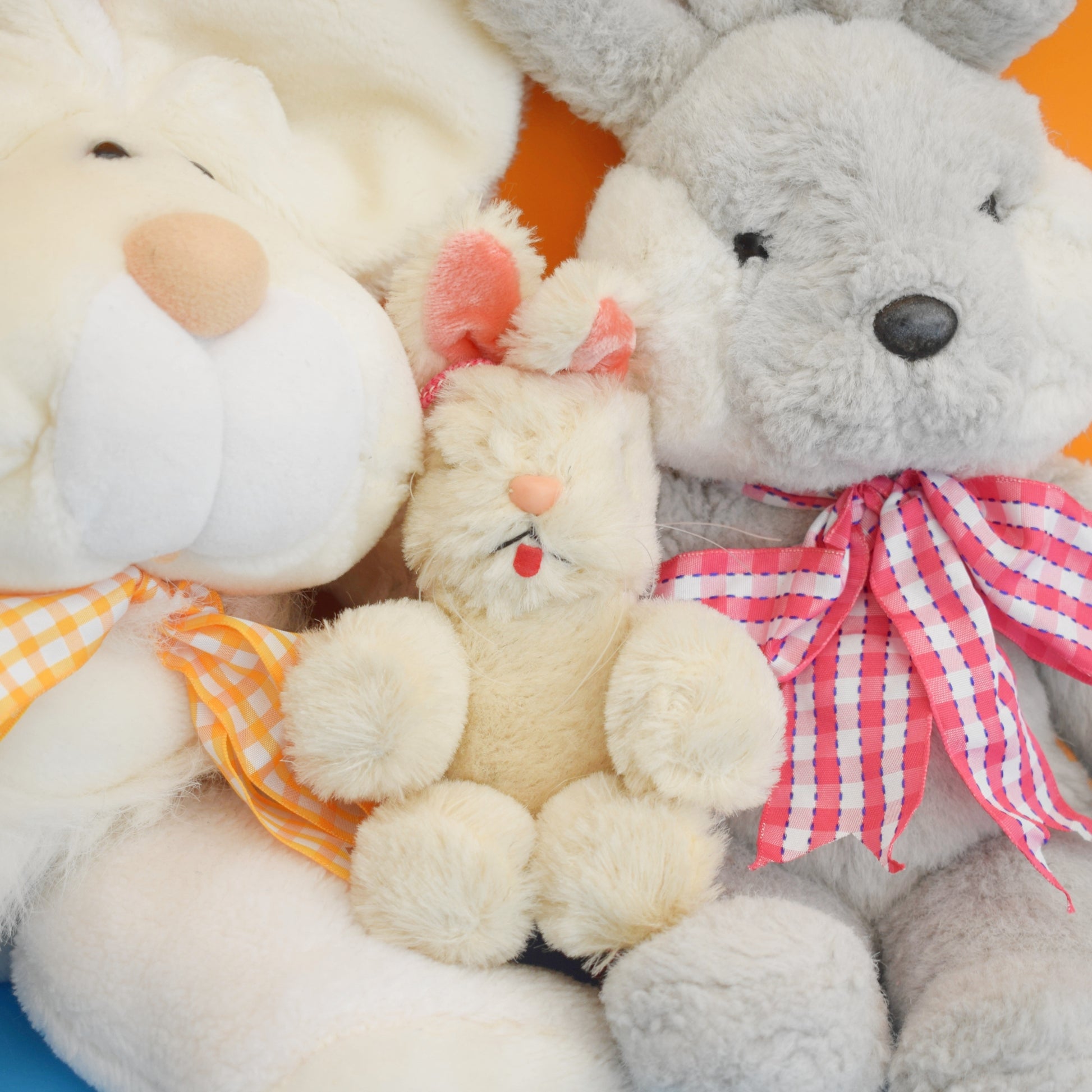 Adorable vintage 1980s fluffy Easter bunnies — authentic Applause Carrot Patch and childhood classics, perfect for collectors, seasonal décor, or a nostalgic gift. Soft, characterful plushes freshly washed and ready to display.
