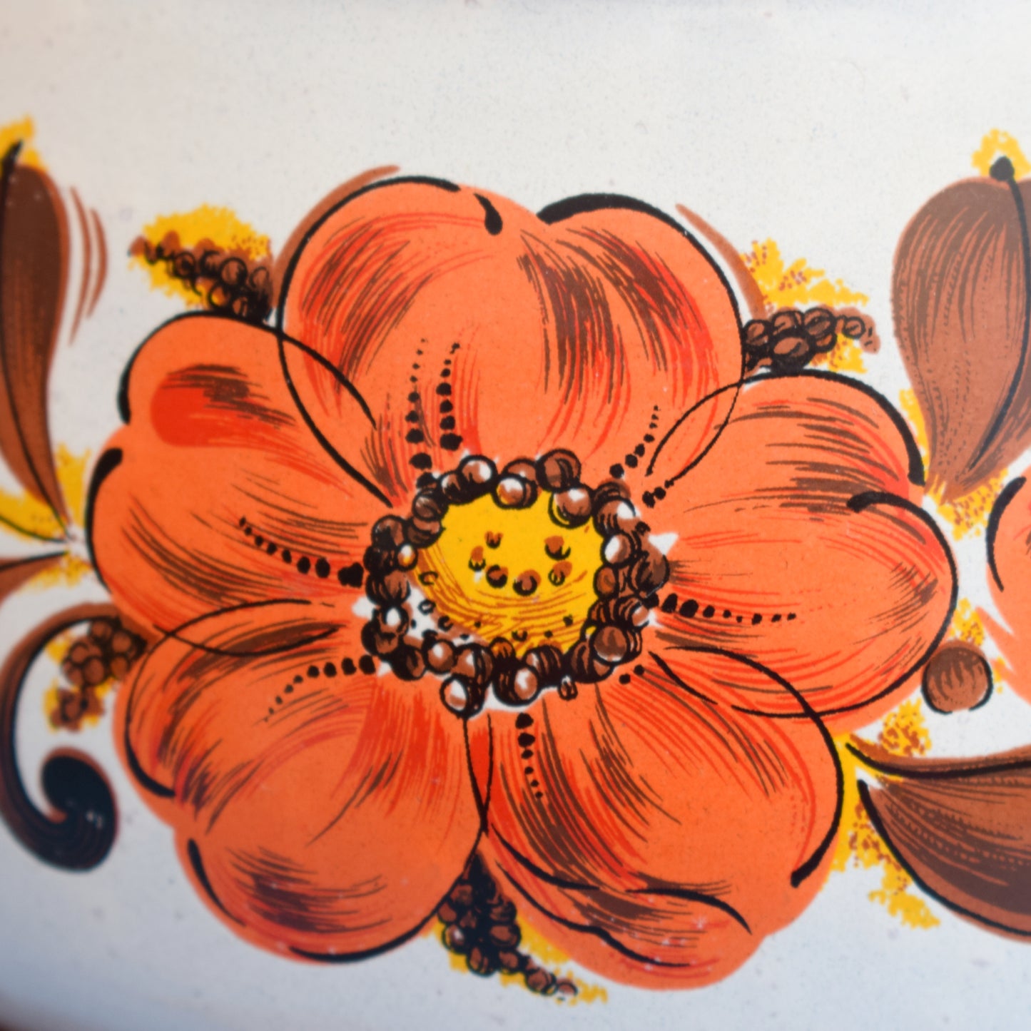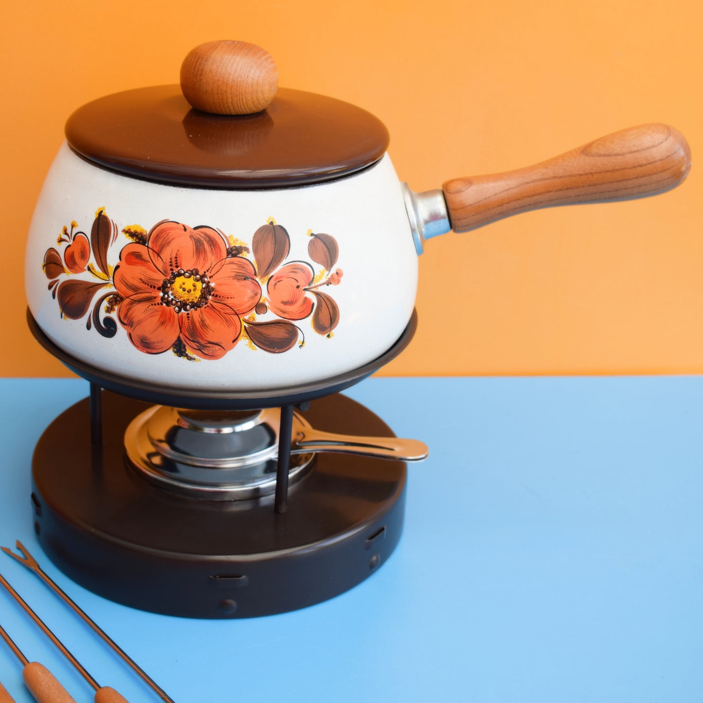Vintage 1980s Fondue Set - Orange Flower Power- Unused
