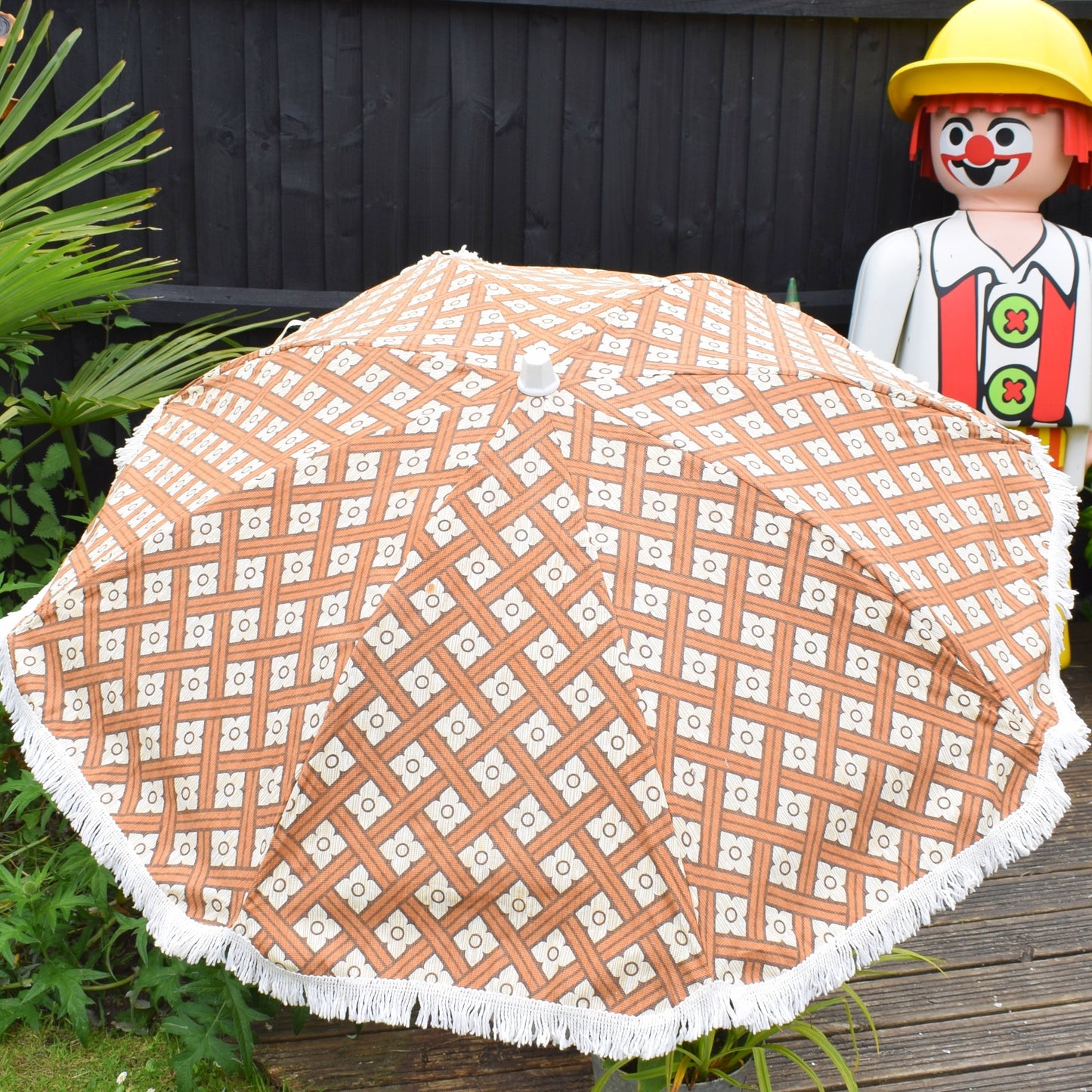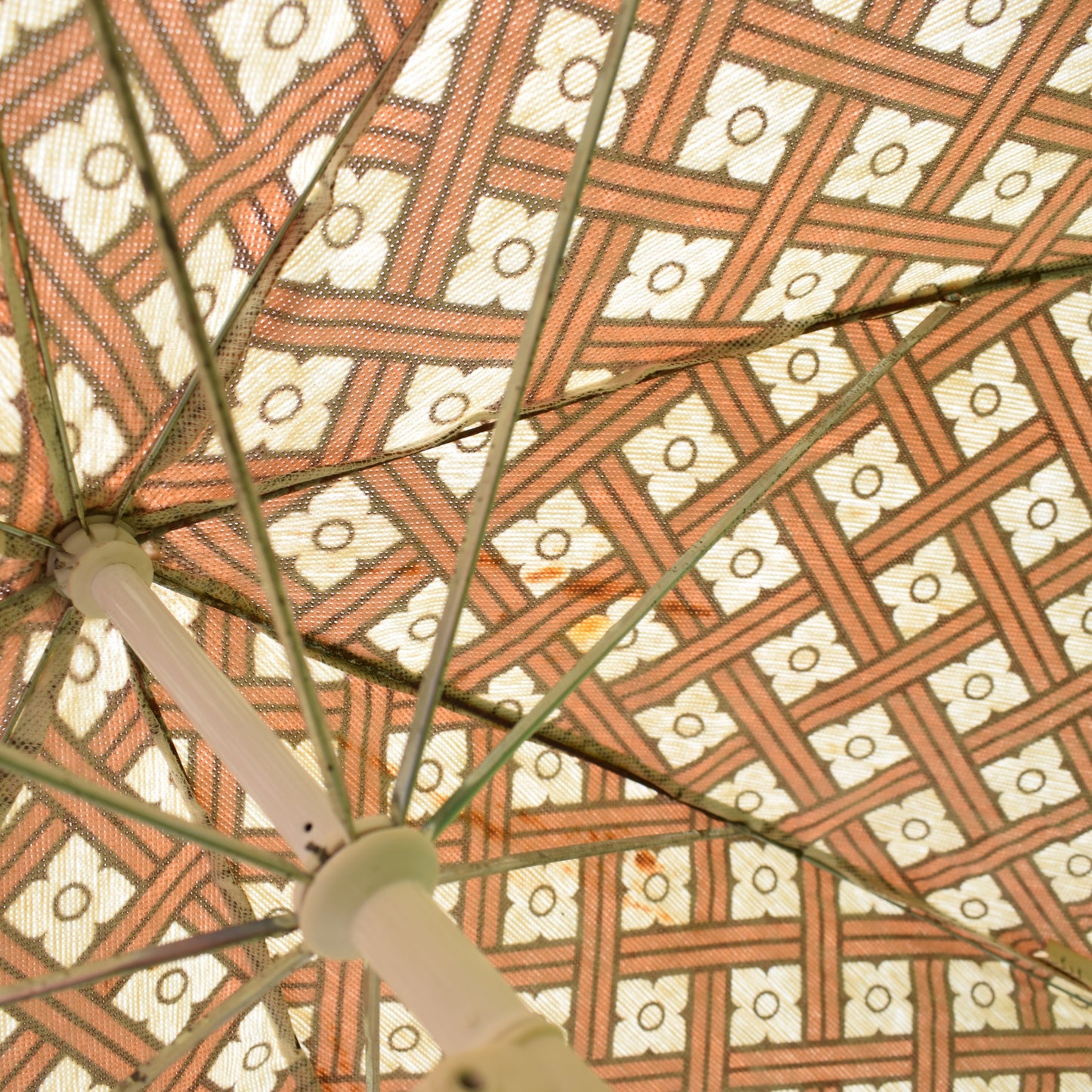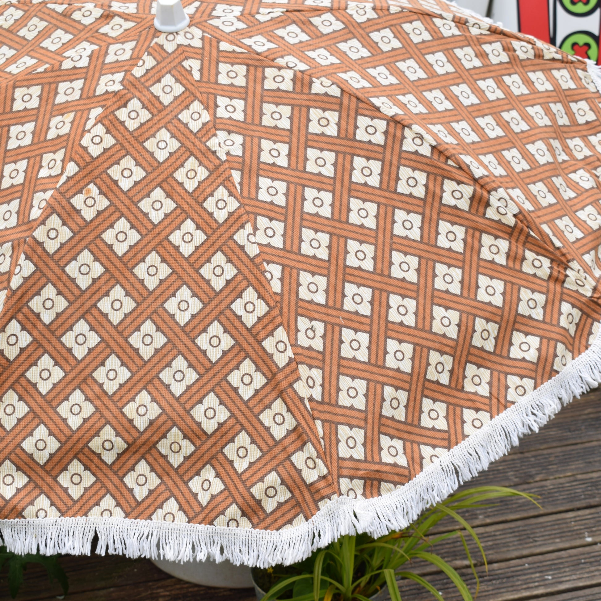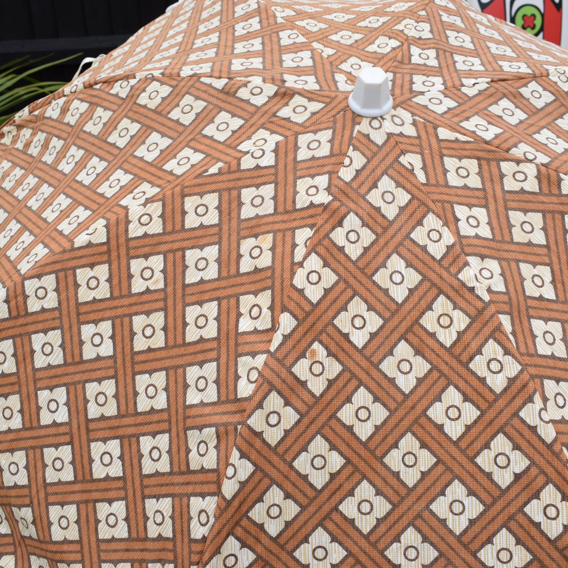 Vintage 1980s Garden Parasol - Brown & White flowers