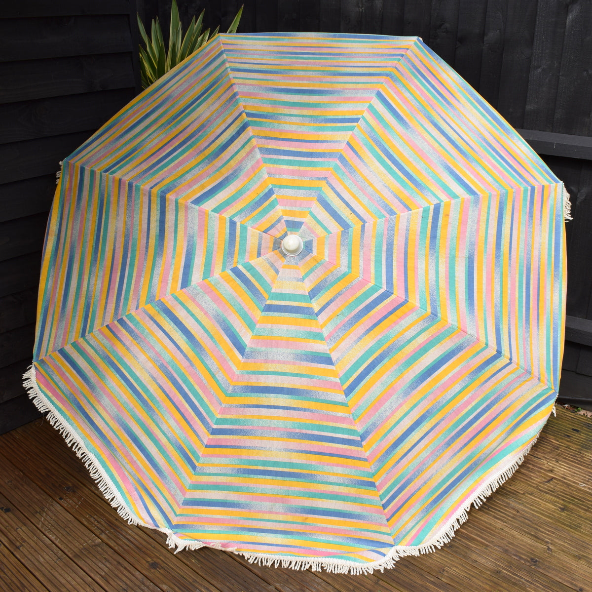 Vintage 1980s - Garden Parasol / Umbrella - Pink, Yellow, Mint