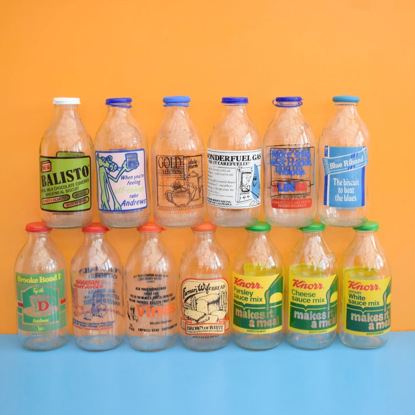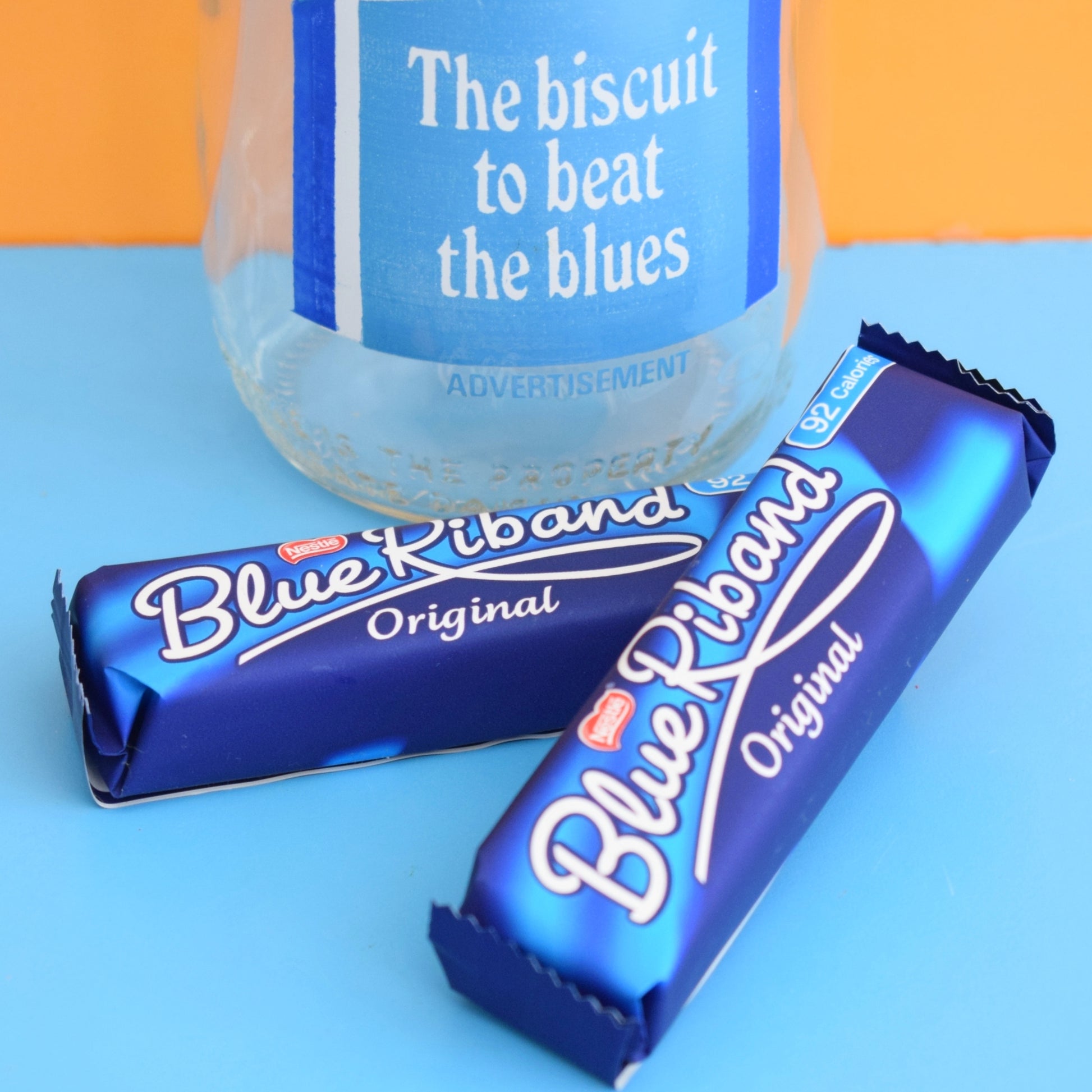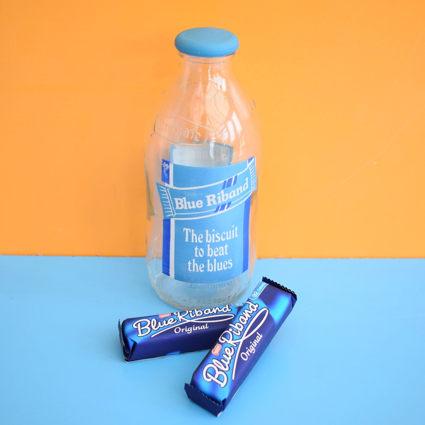 Vintage 1980s Glass Milk Bottle - Blue Riband