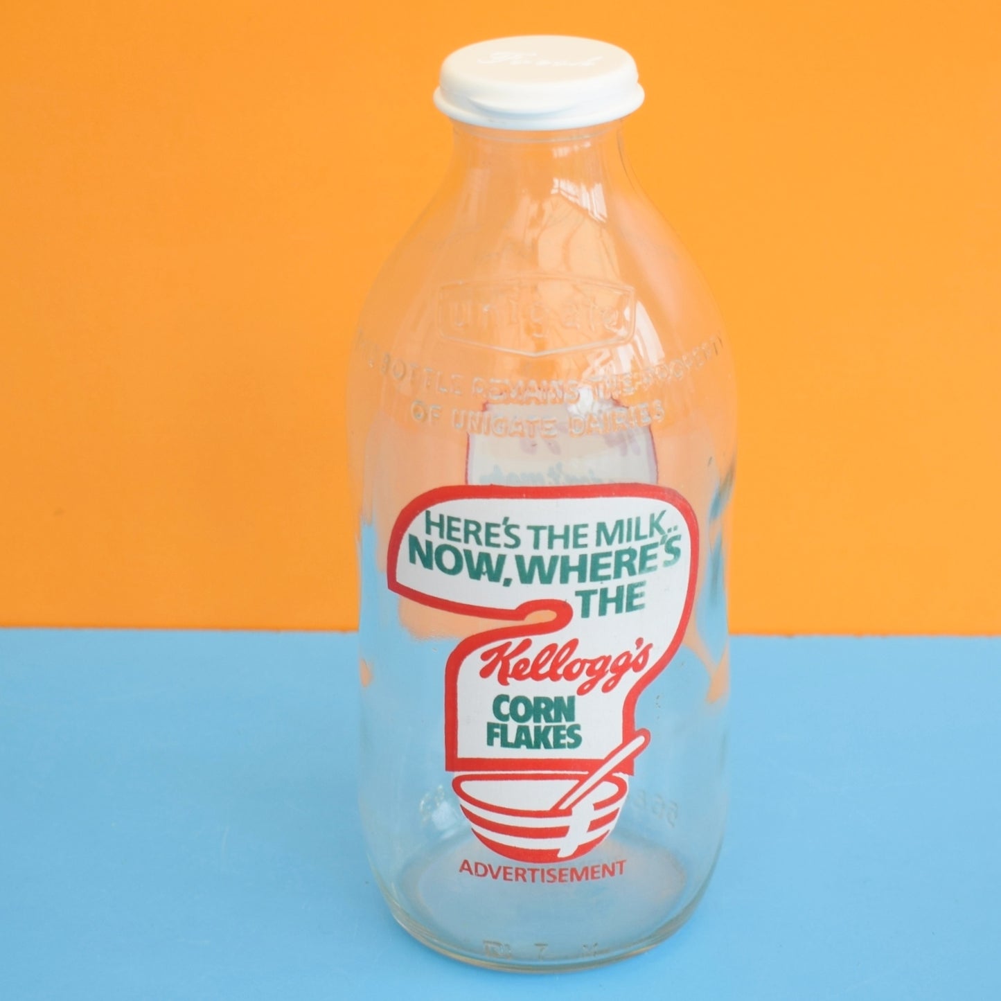 Vintage 1980s Glass Milk Bottle - Kellogg's - Cocktails ?