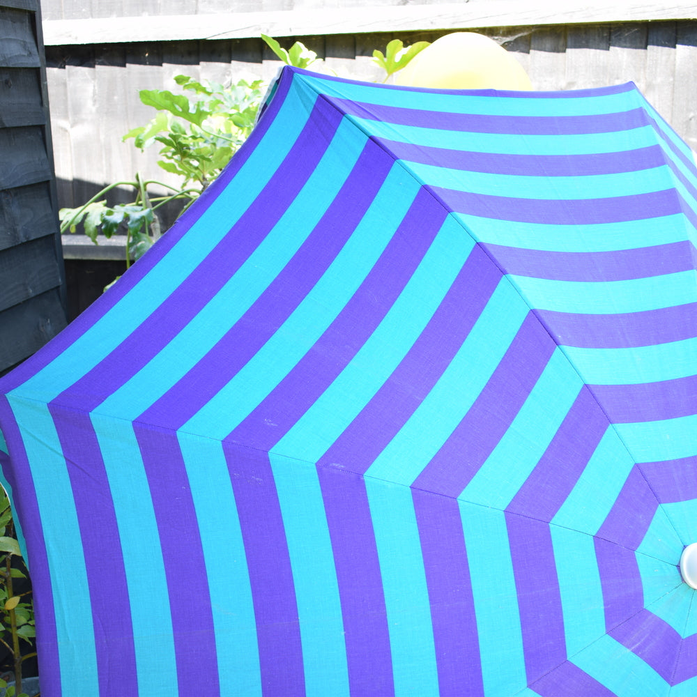 Vintage 1980s Large Parasol - Purple / Turquoise Stripe