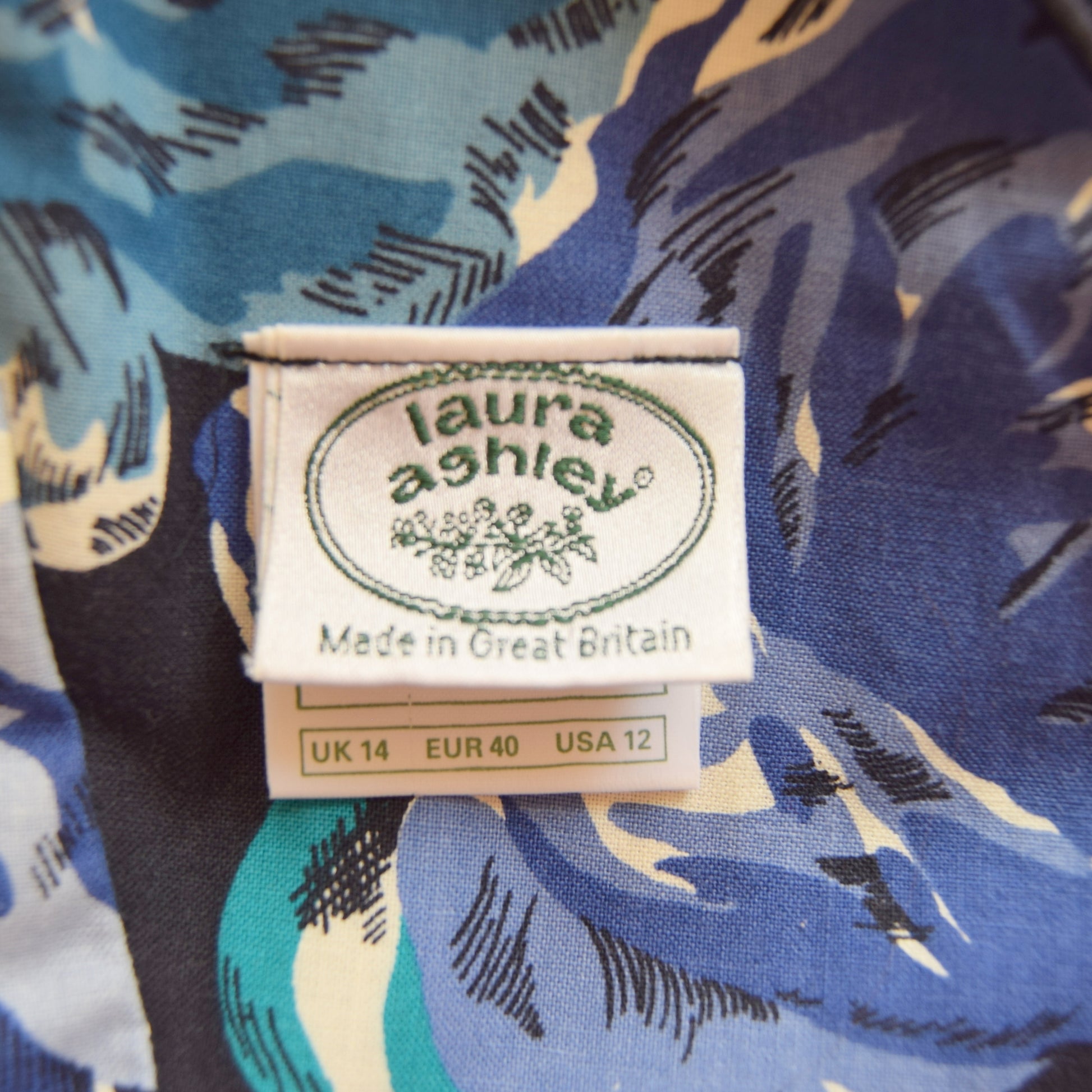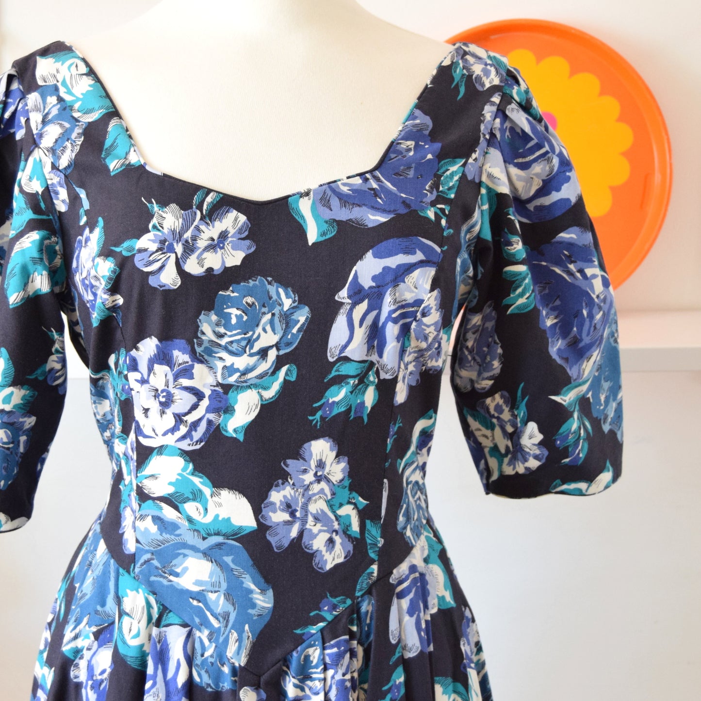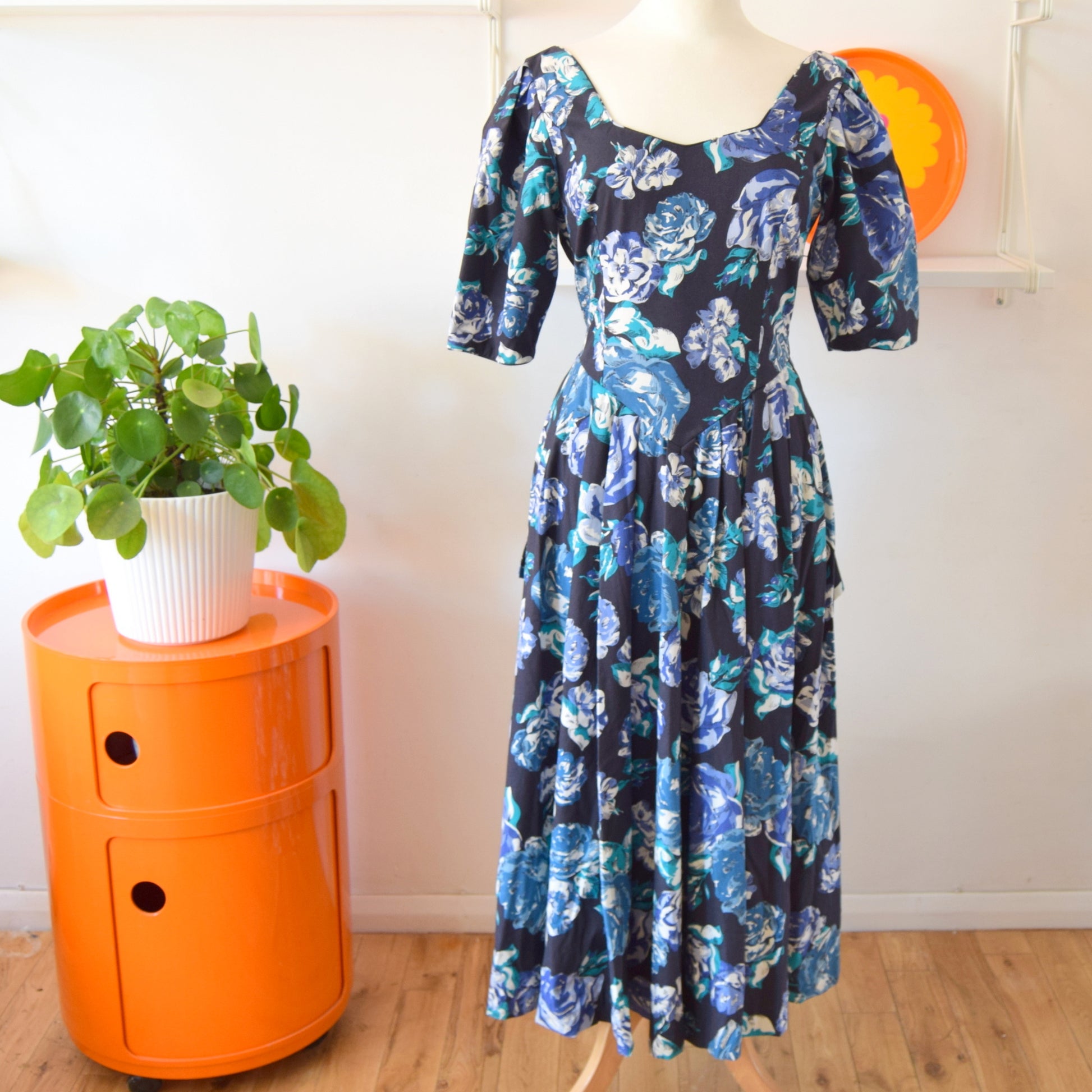 Vintage 1980s Laura Ashley Dress - Blue Flowers - Size 14