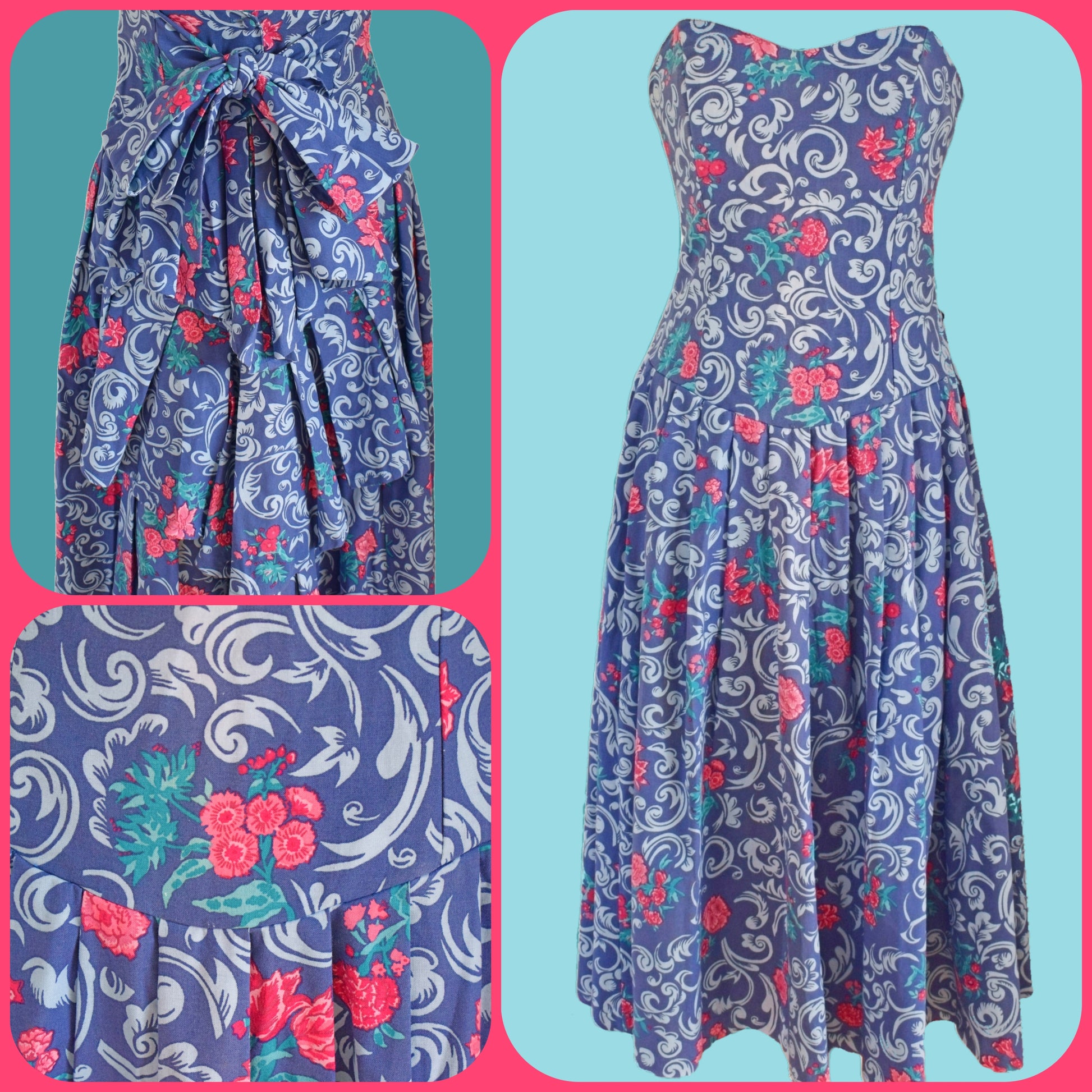 Vintage 1980s Laura Ashley Strapless Dress - Size 12