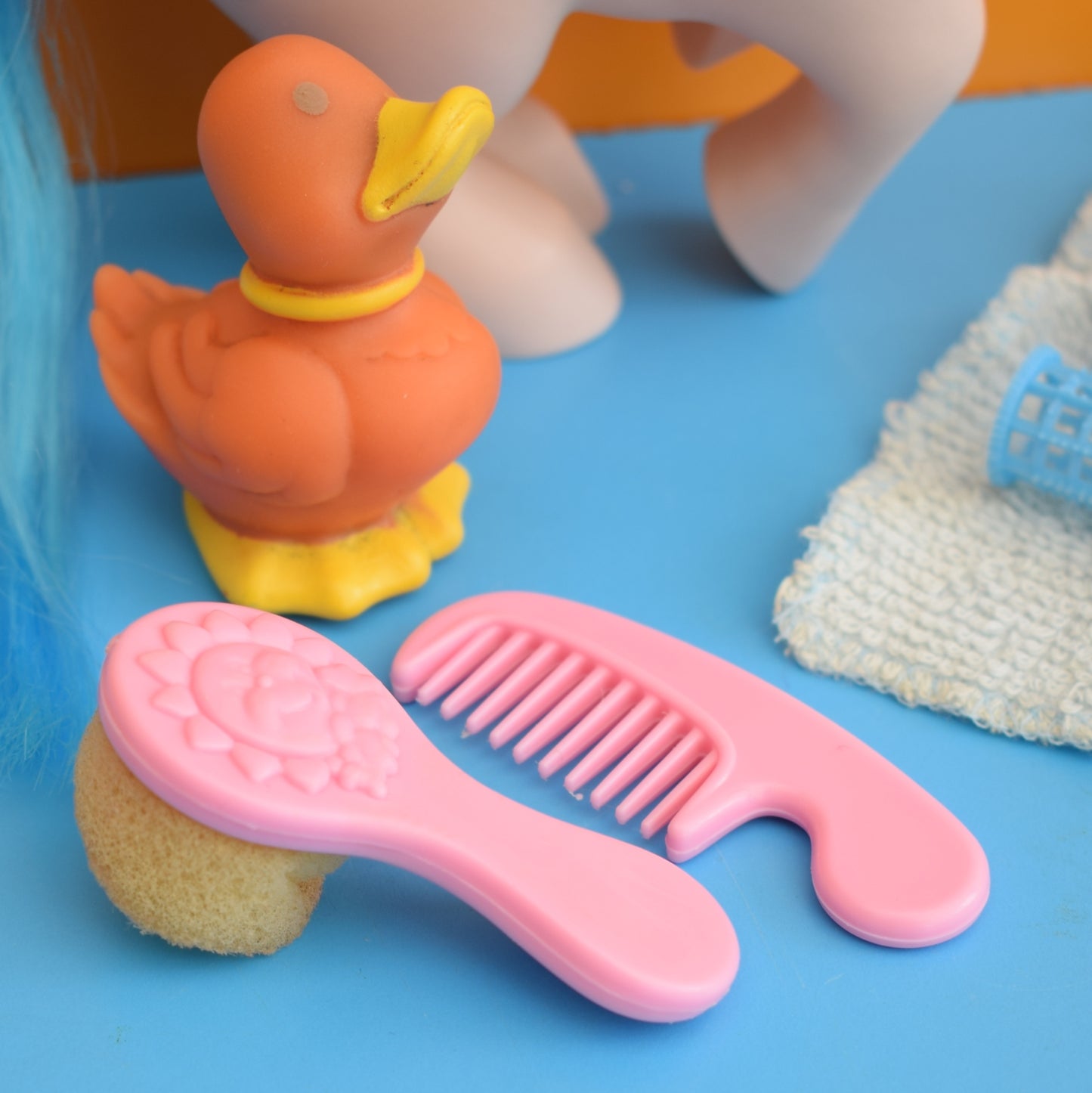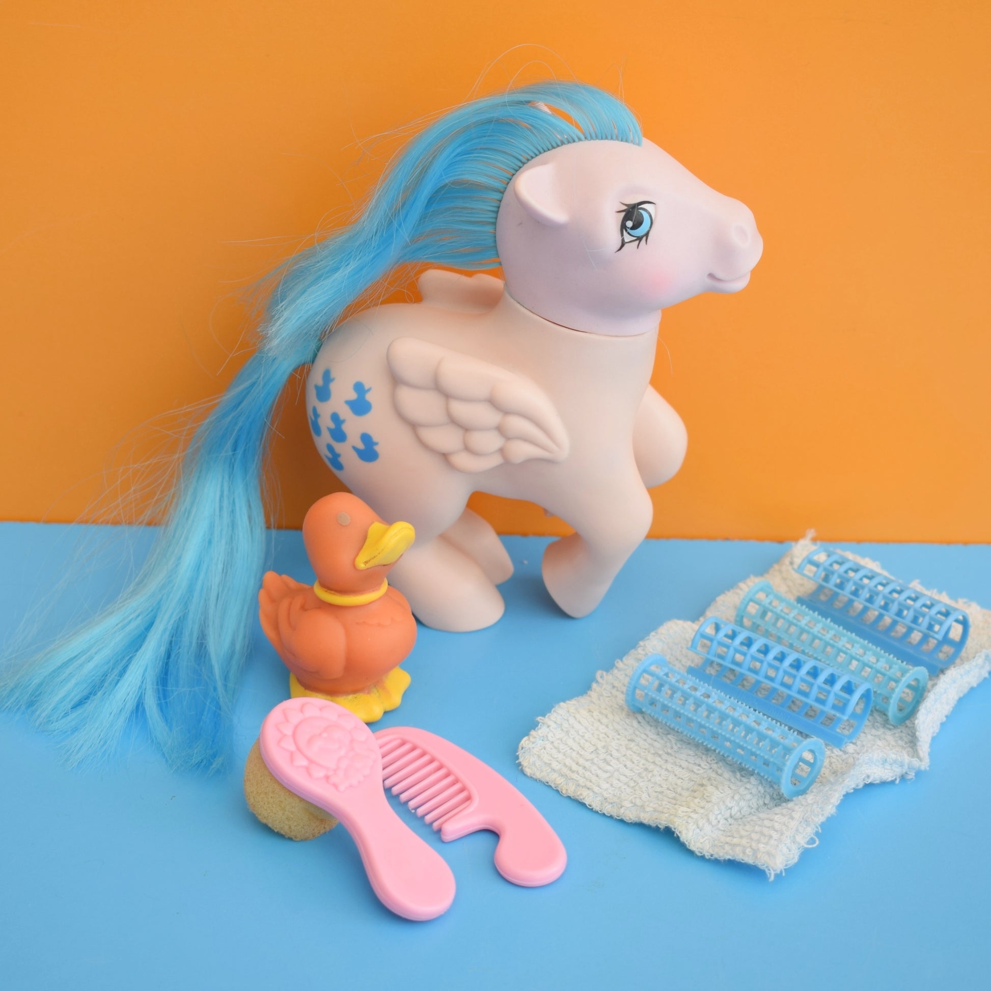 Called Sprinkles, she also comes with her little friend called Duck soup, plus towel, curlers, comb and sponge