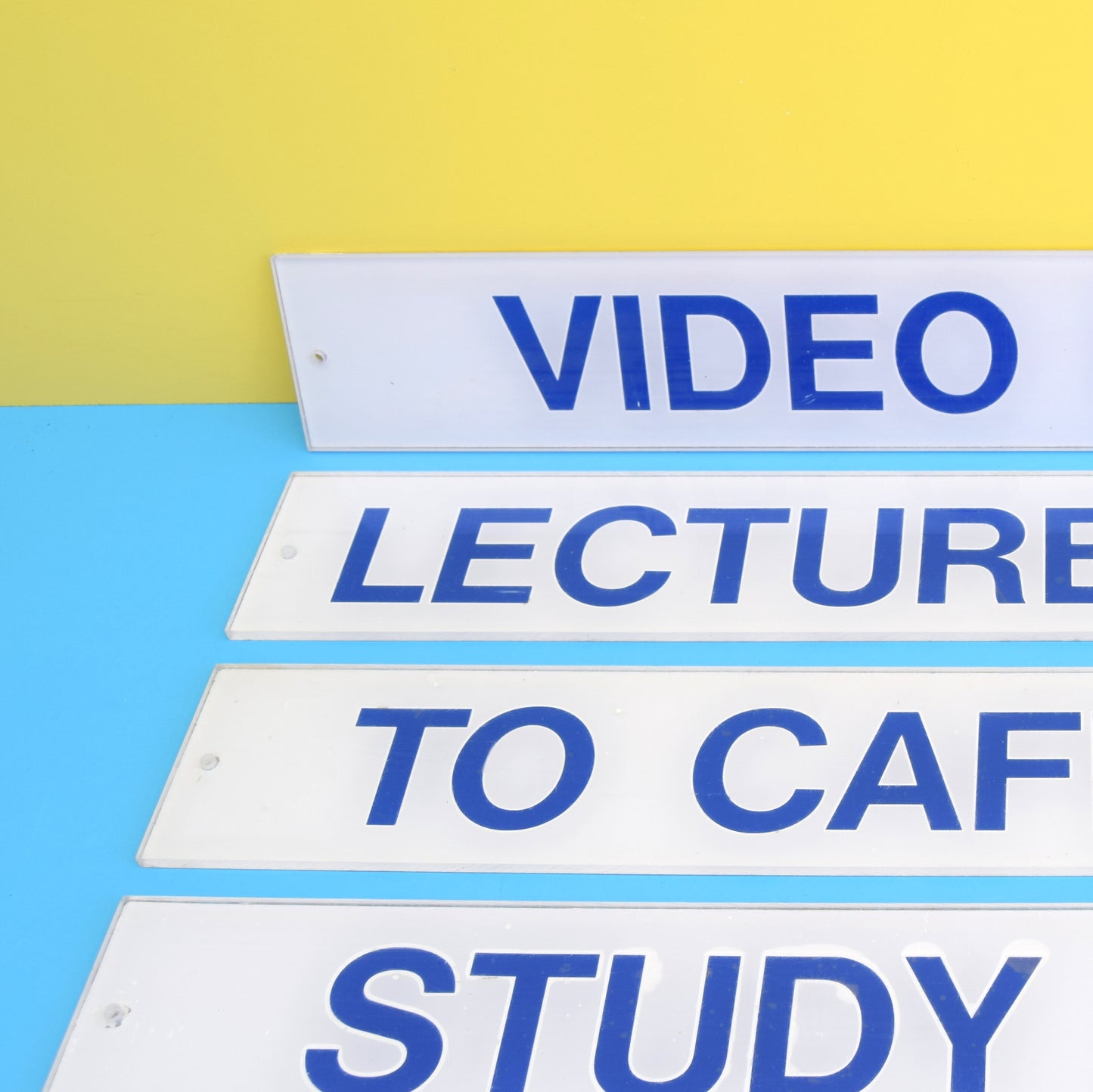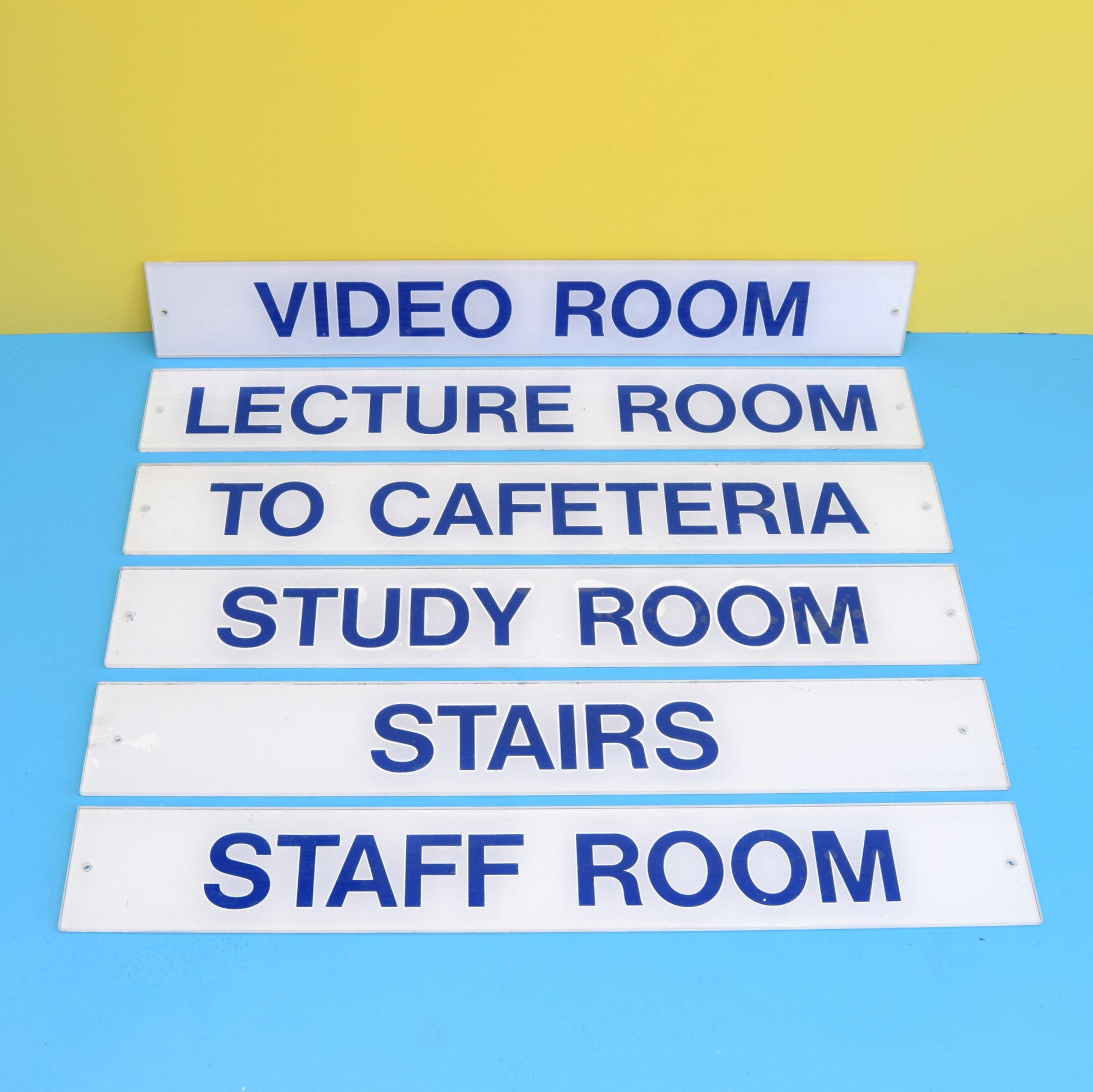 Vintage 1980s Perspex School Signs - Video Room / Cafeteria Etc