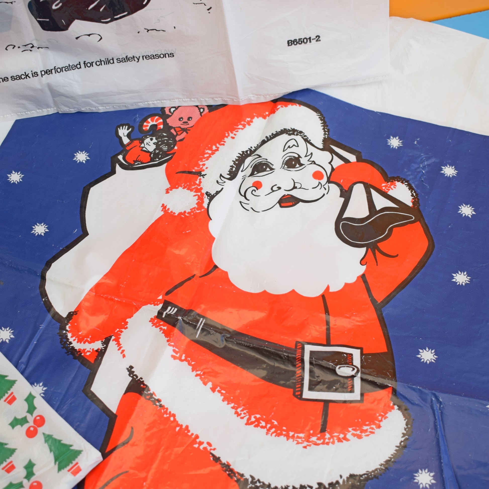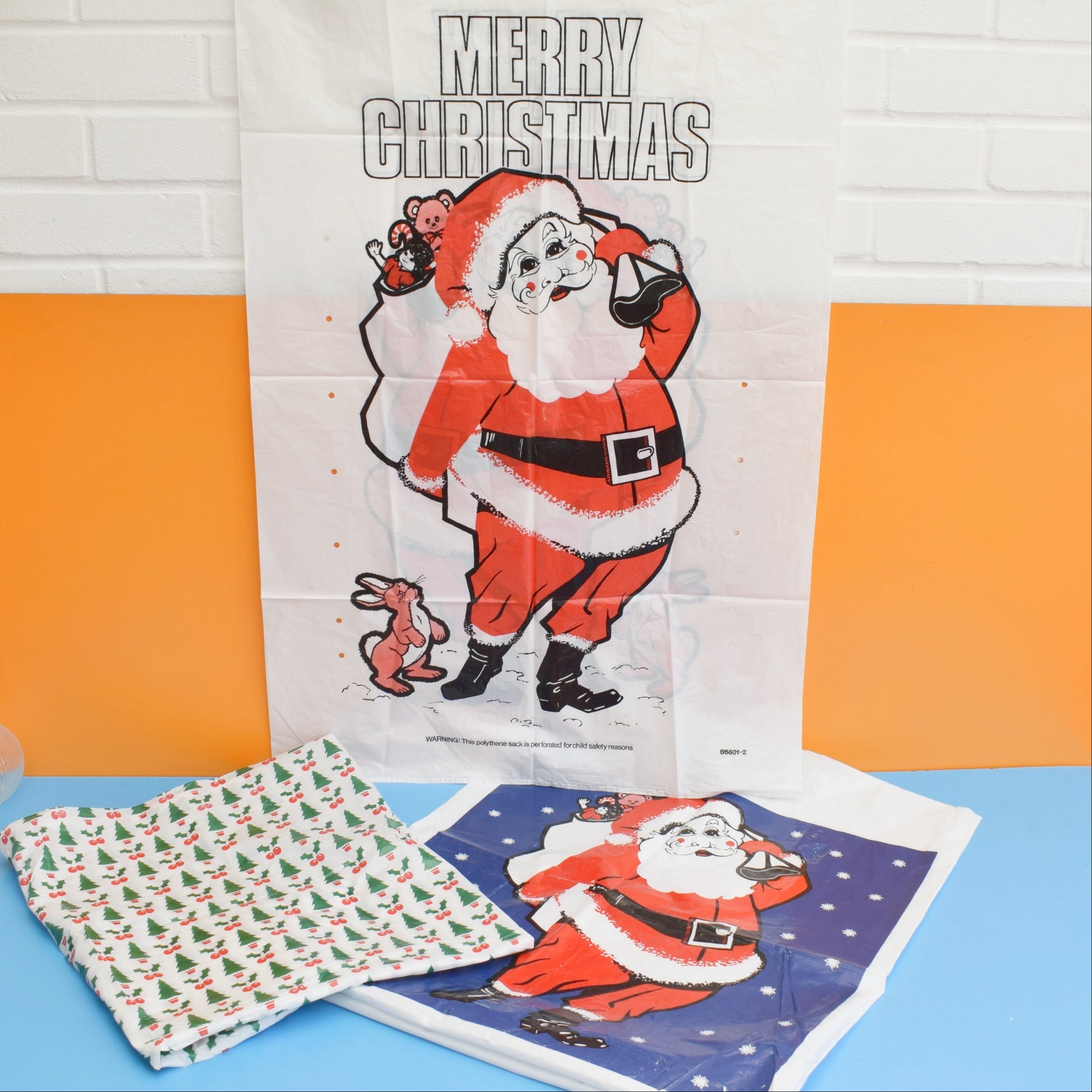 This is a trio of vintage christmas bags, all plastic and in good condition