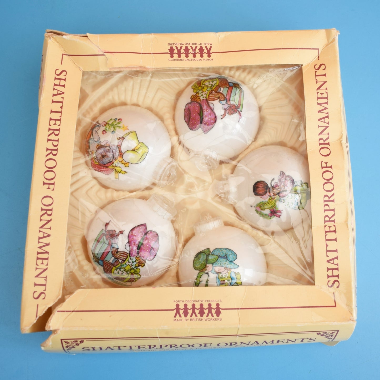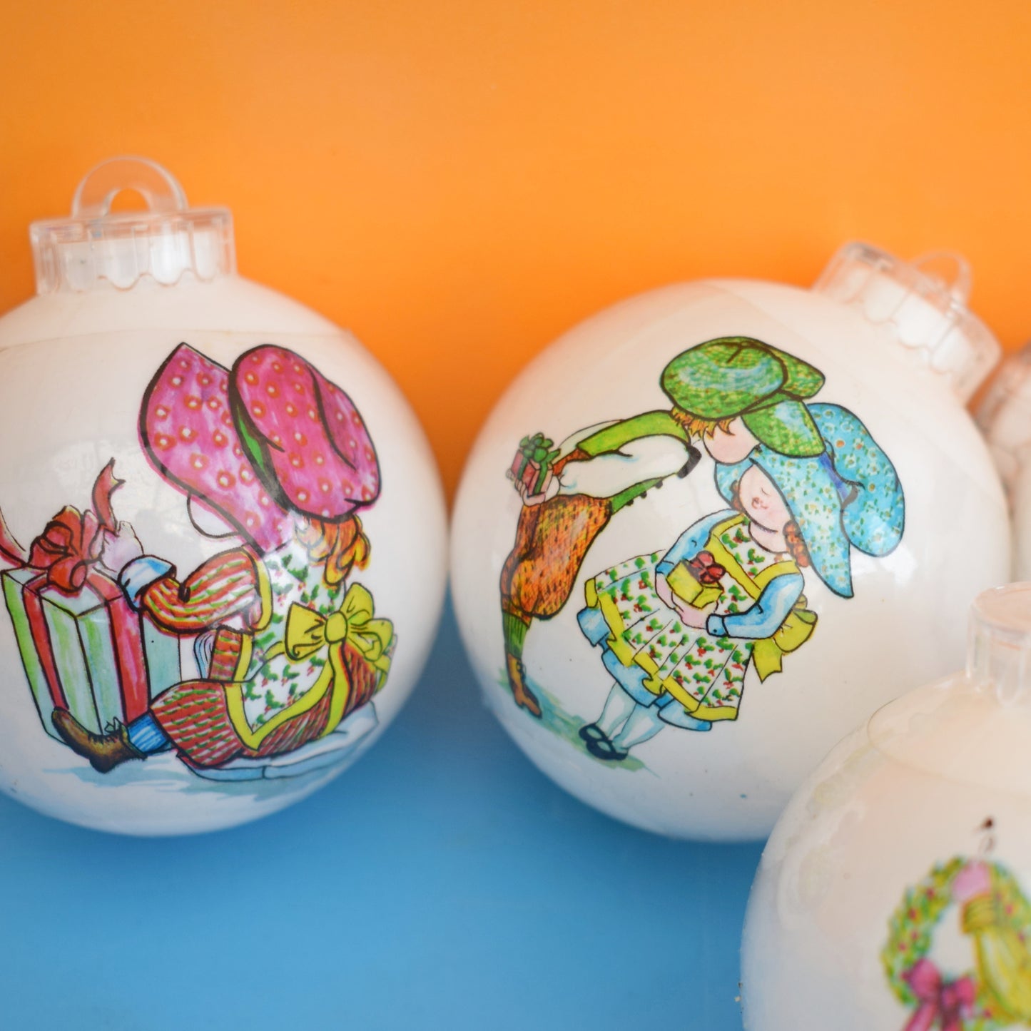 Vintage 1980s Plastic Christmas Baubles - Holly Hobbie