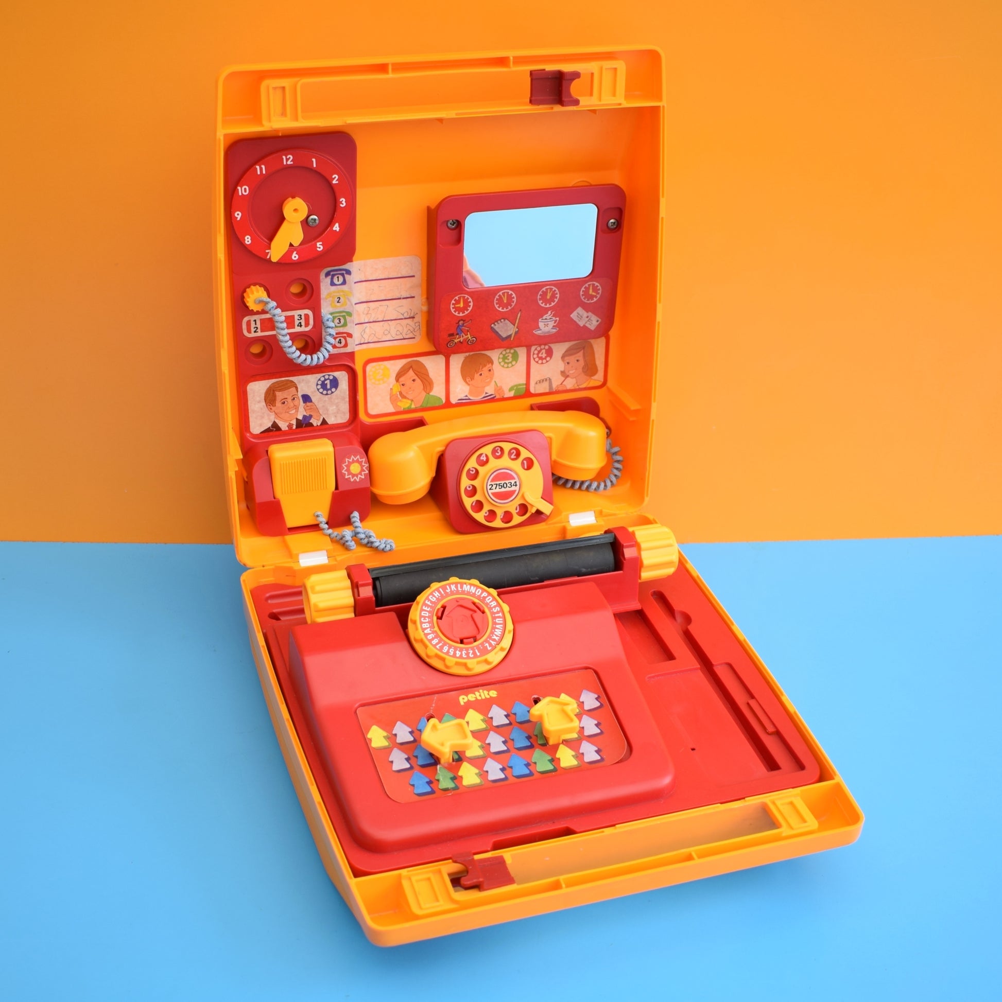 A toy post office or telephone exchange? great graphics in yellow and red plastic