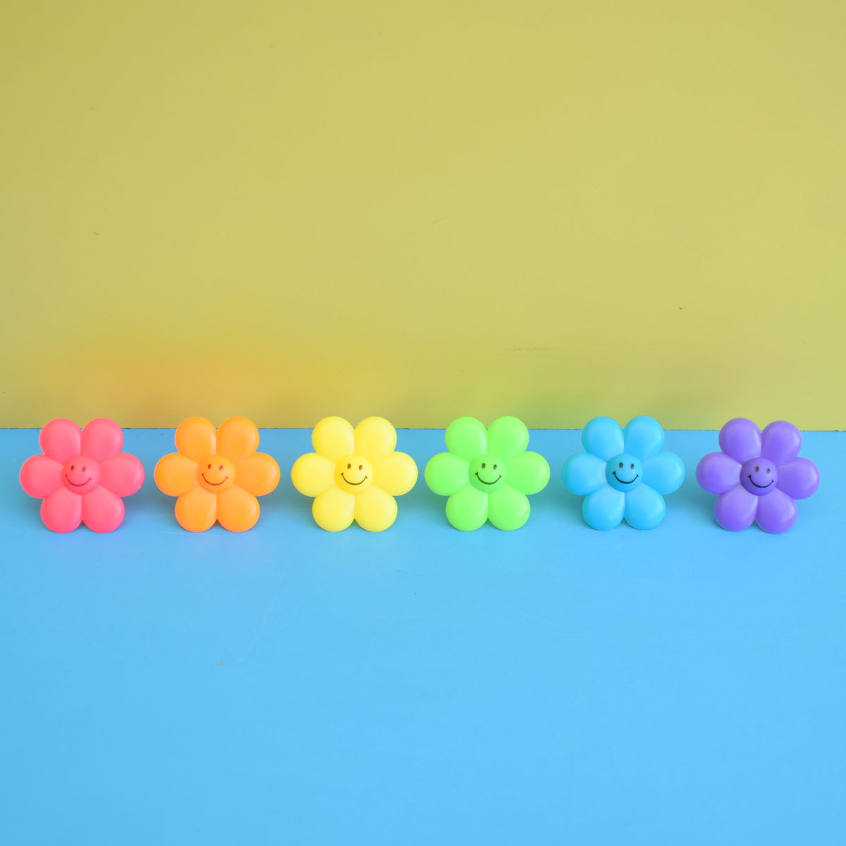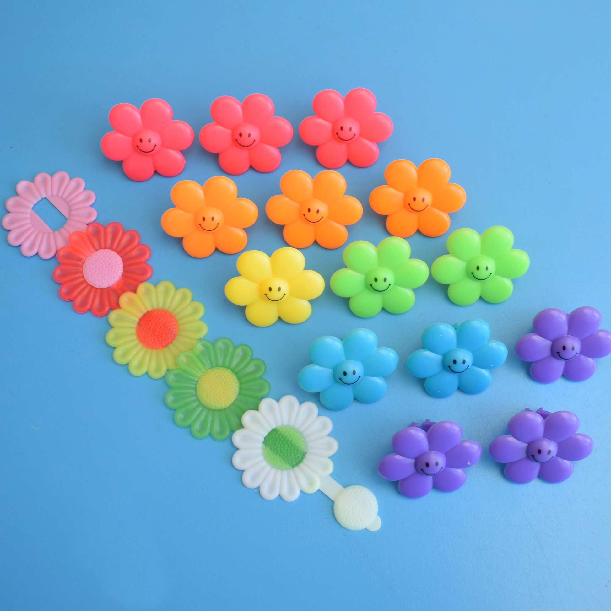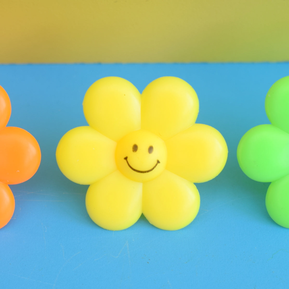 Vintage 1990s Plastic Kitsch Rings - Acid House Flower Power