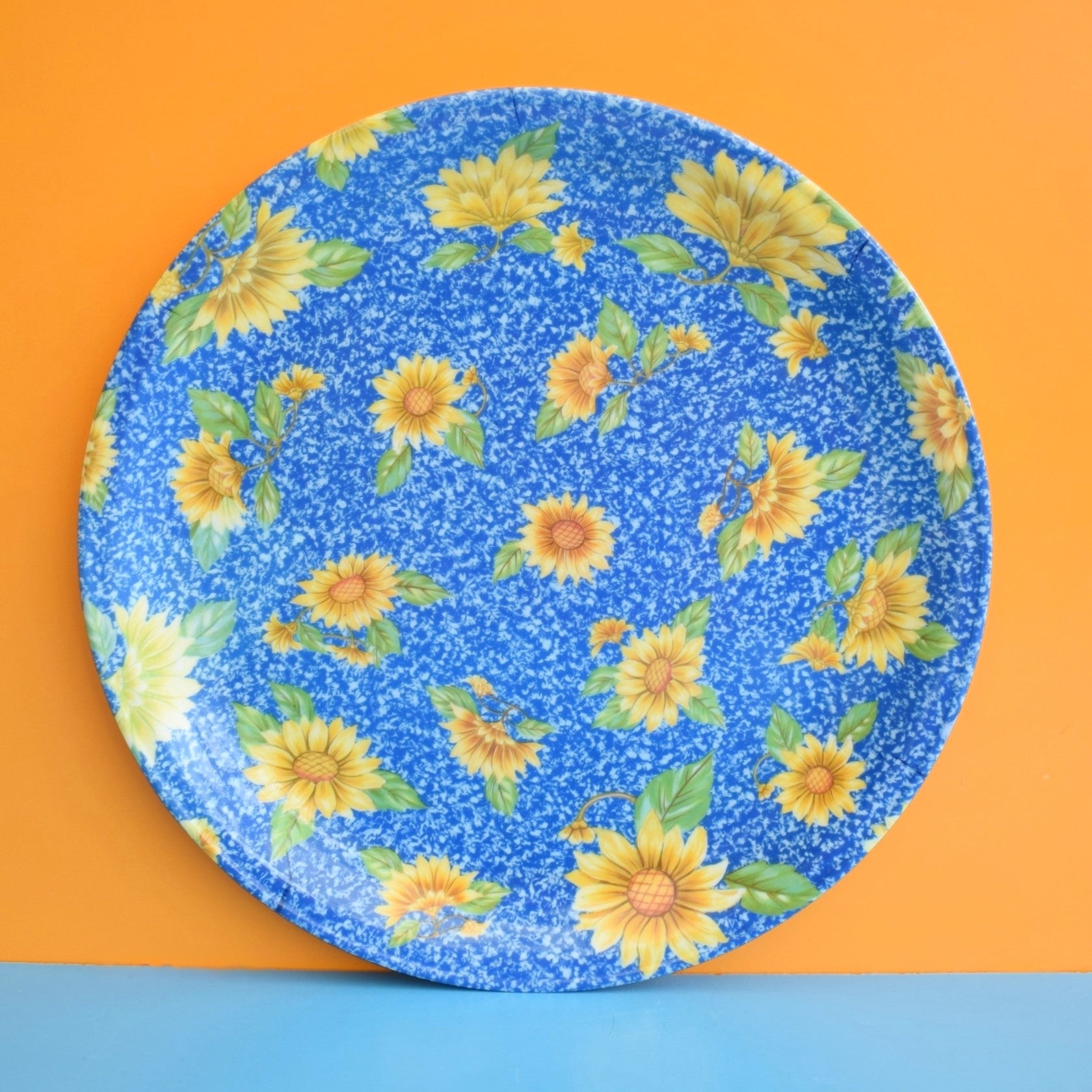 Vintage 1990s Tray - Round Melamine- Sunflowers & Blue