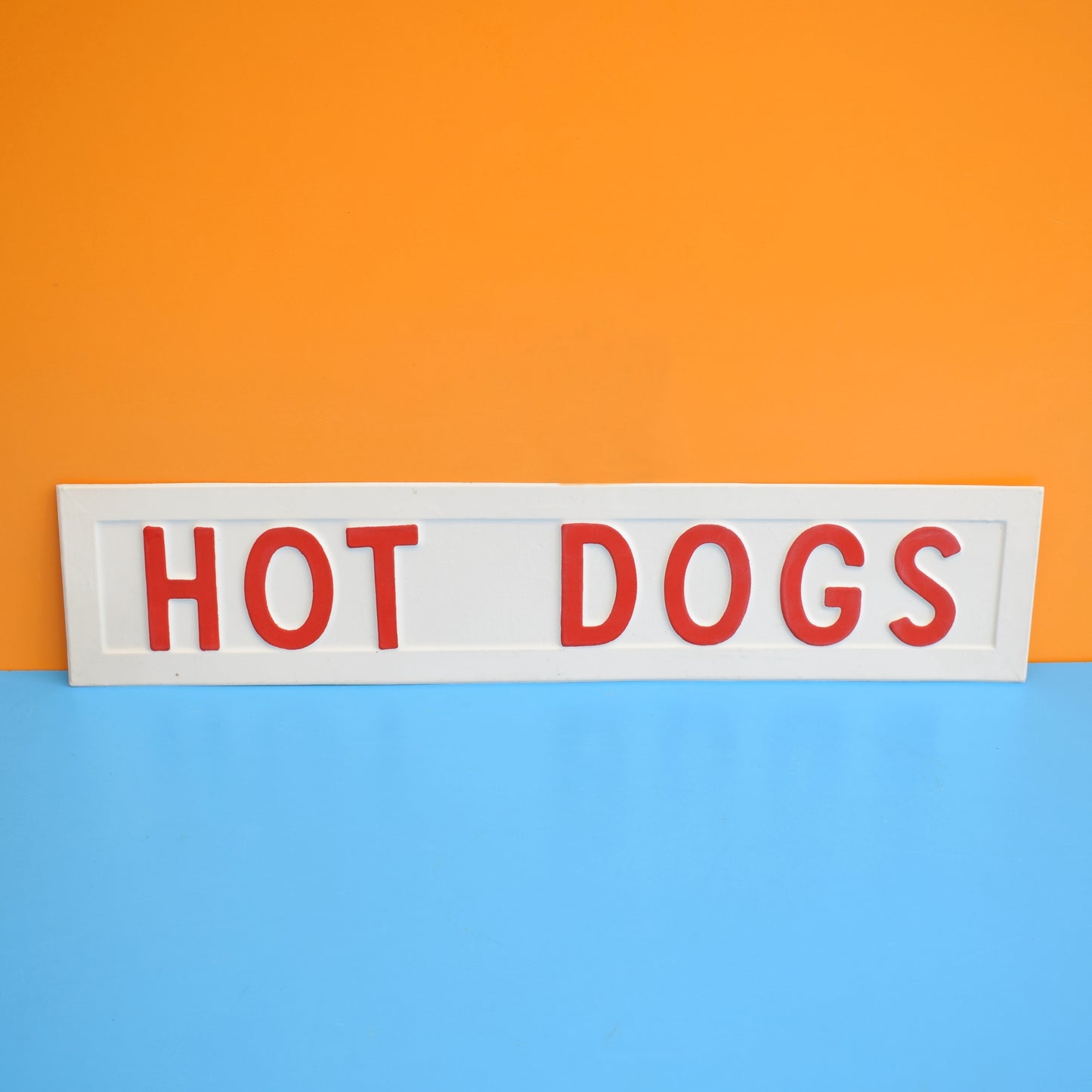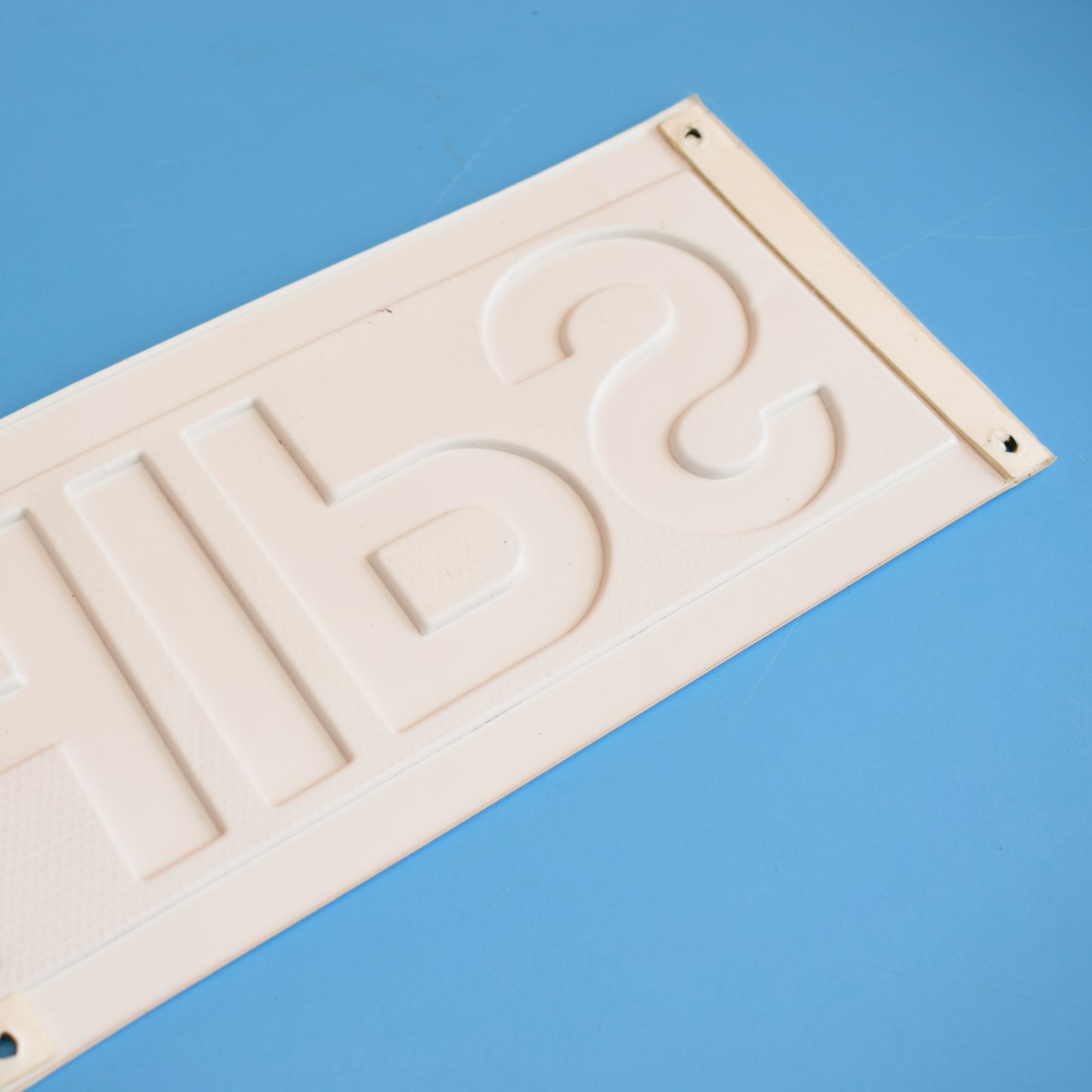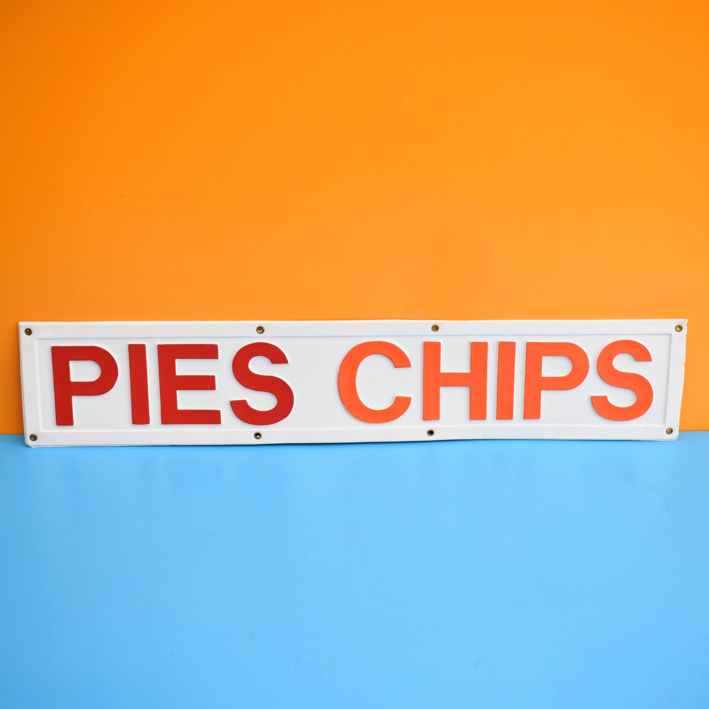 Made from thin white mould blown plastic, with red and orange lettering