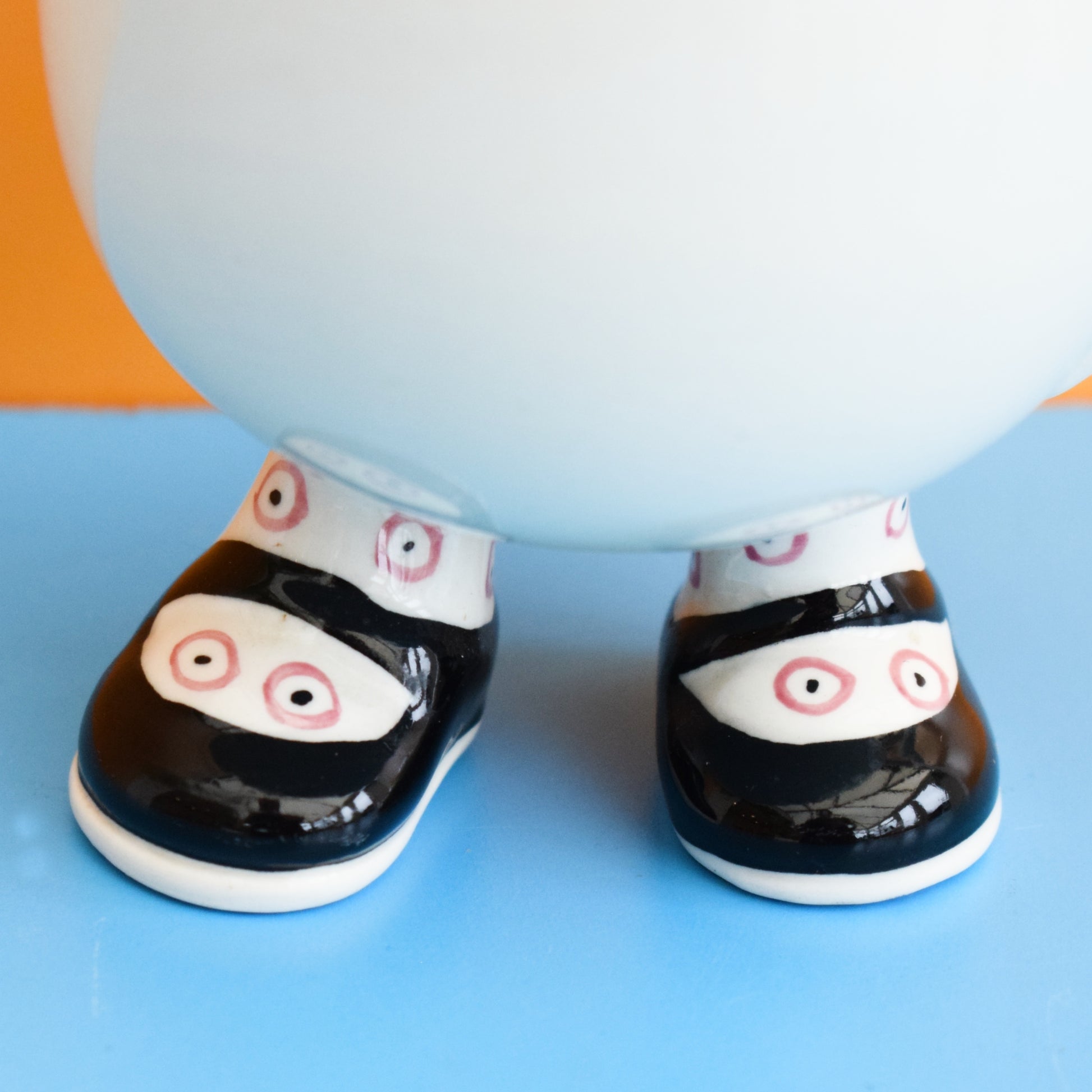 The design is known as 'walking ware' And has two little feet sticking out below (complete with black shoes and spotty socks)