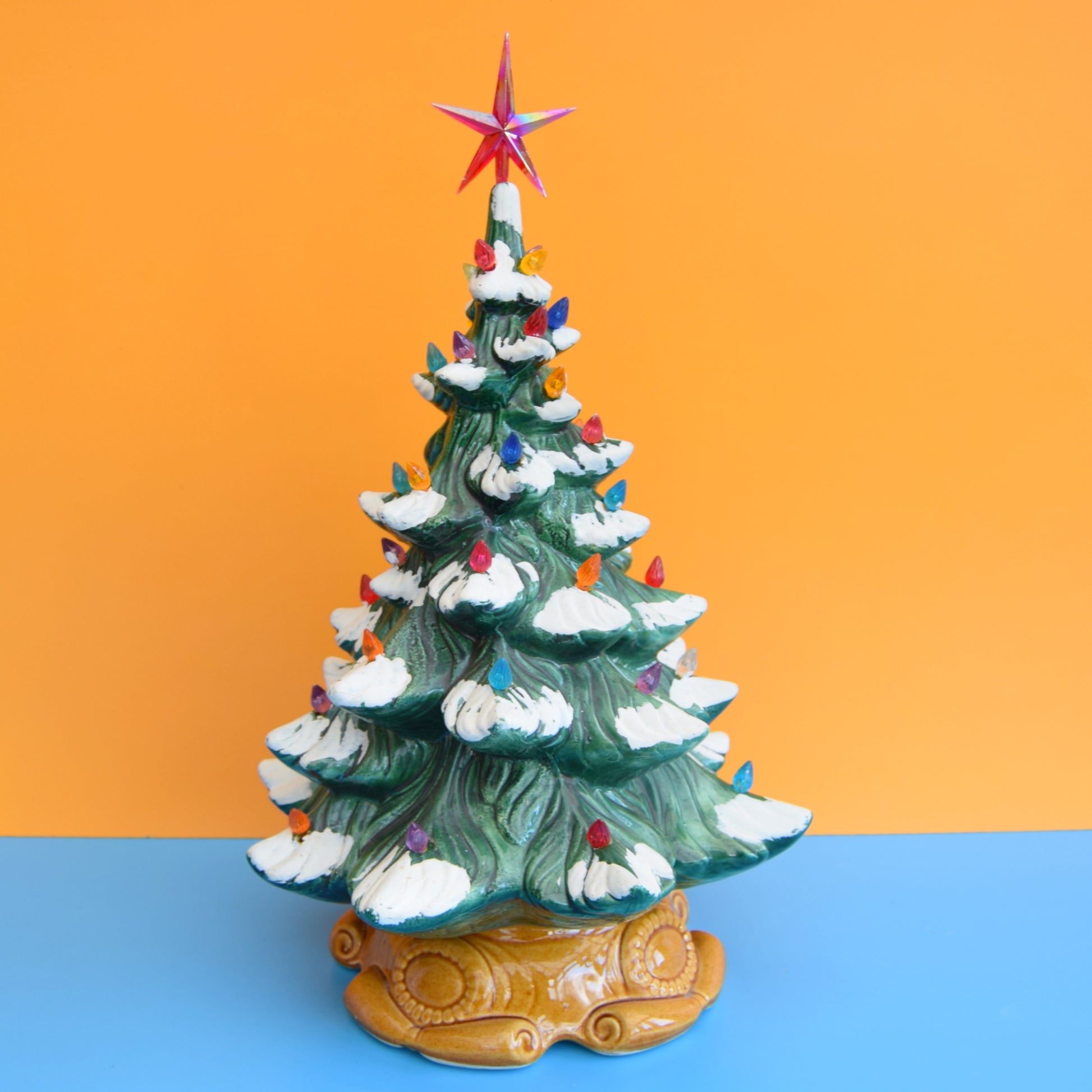 Vintage Ceramic Christmas Tree Lamp - Rainbow Flame Bulbs .