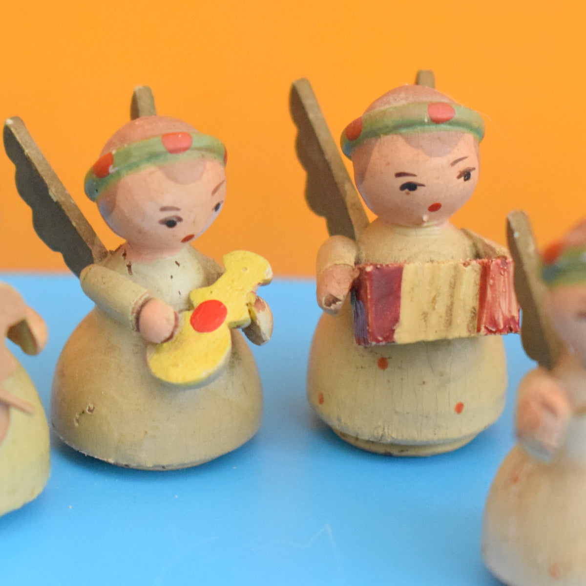 Vintage 1950s Erzgebirge German Wooden Angel Band