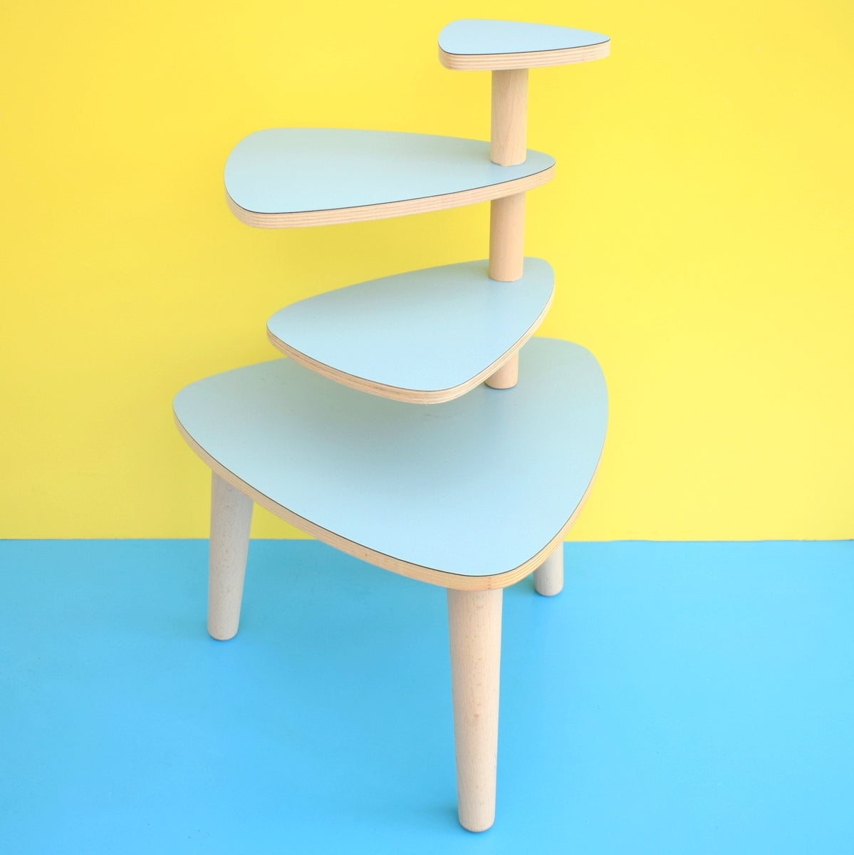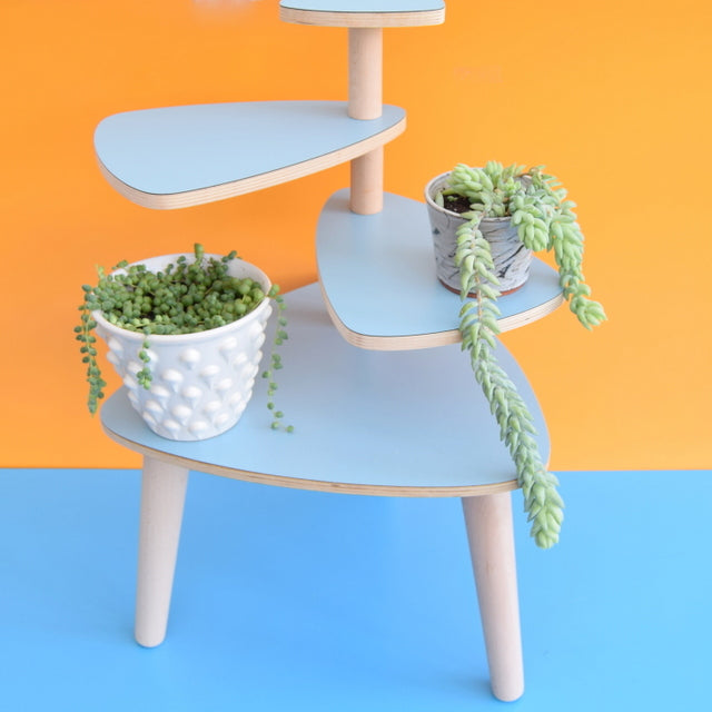 Vintage Formica Tiered Plant Stand / Table - Pale Blue Formica Tops