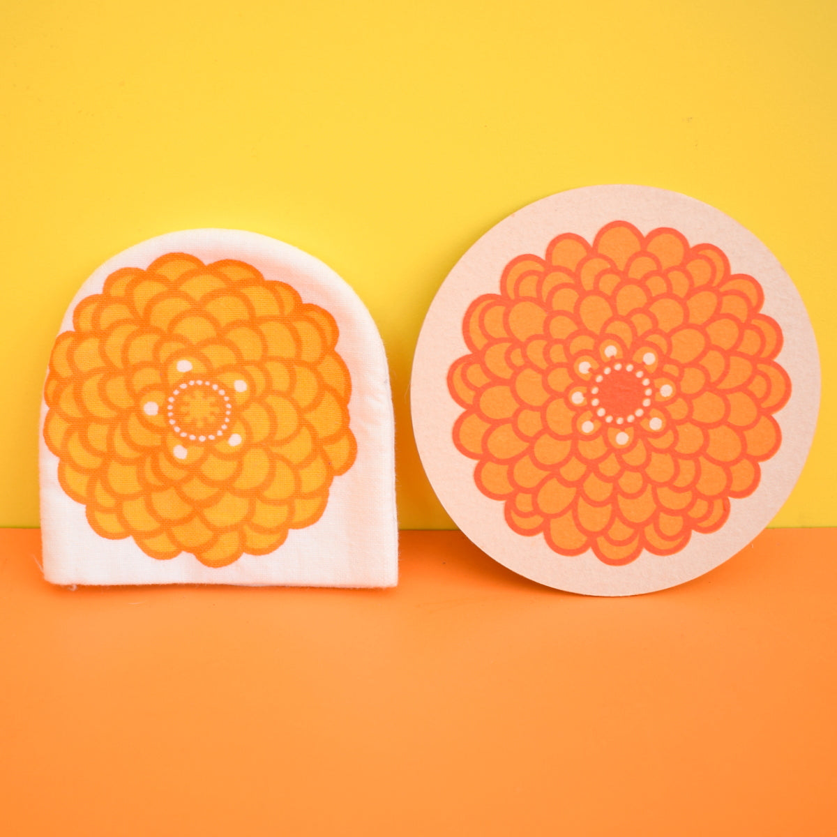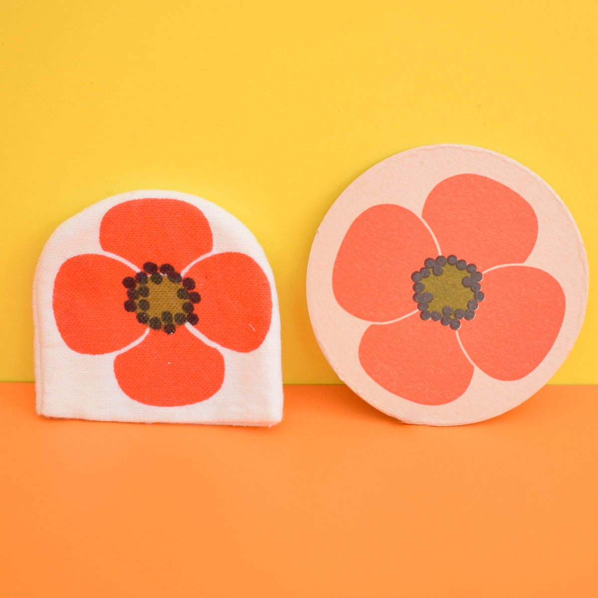 Vintage Laurids Lonborg Cardboard Coasters & Egg Cosies - Flower Designs - Orange & Pink